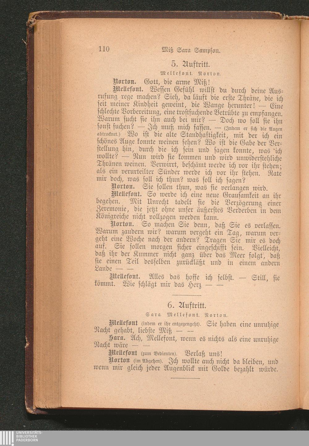 Miß Sara Sampson. Ein bürgerliches Trauerspiel in fünf Aufzügen.