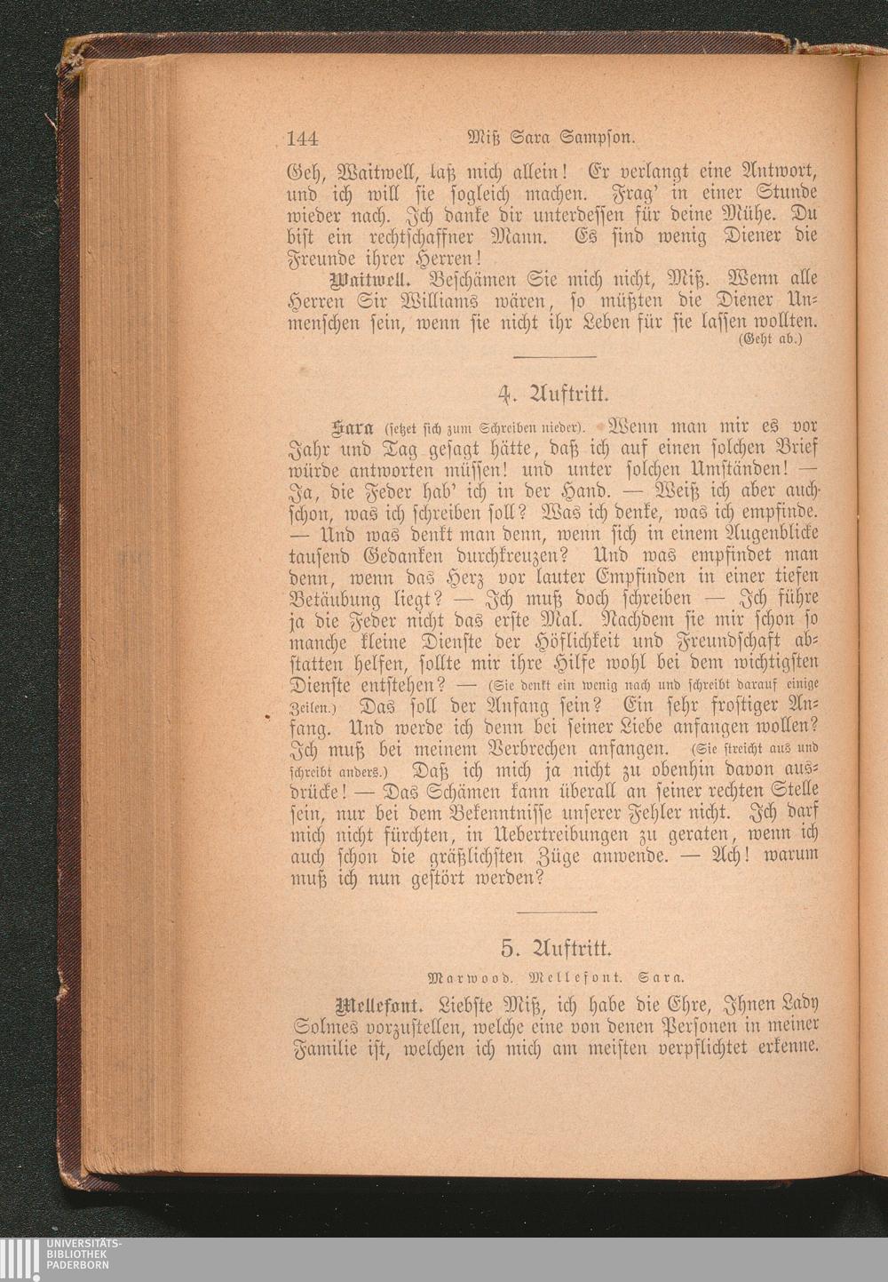 Miß Sara Sampson. Ein bürgerliches Trauerspiel in fünf Aufzügen.