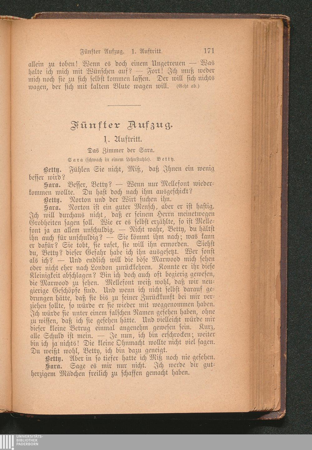 Miß Sara Sampson. Ein bürgerliches Trauerspiel in fünf Aufzügen.