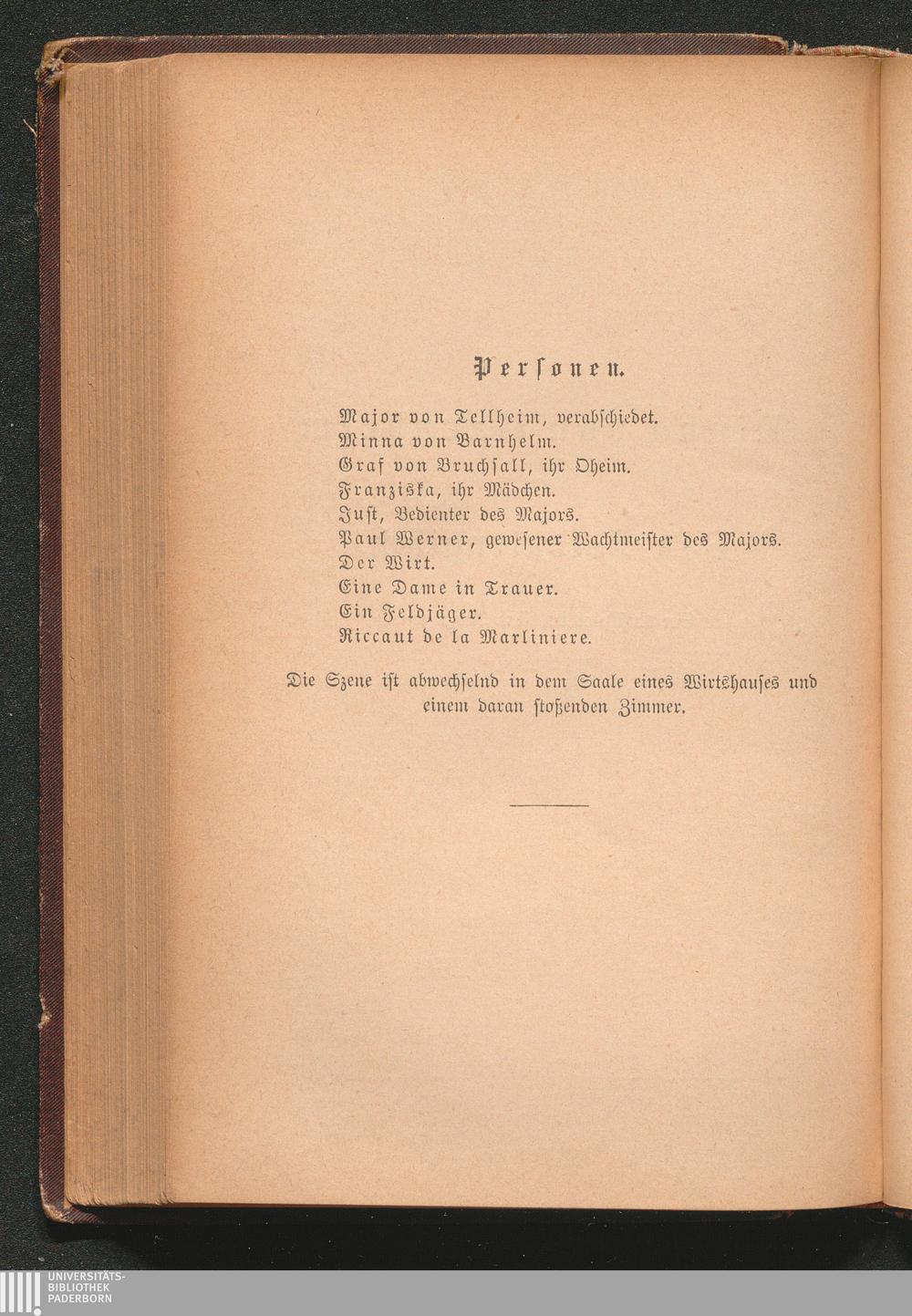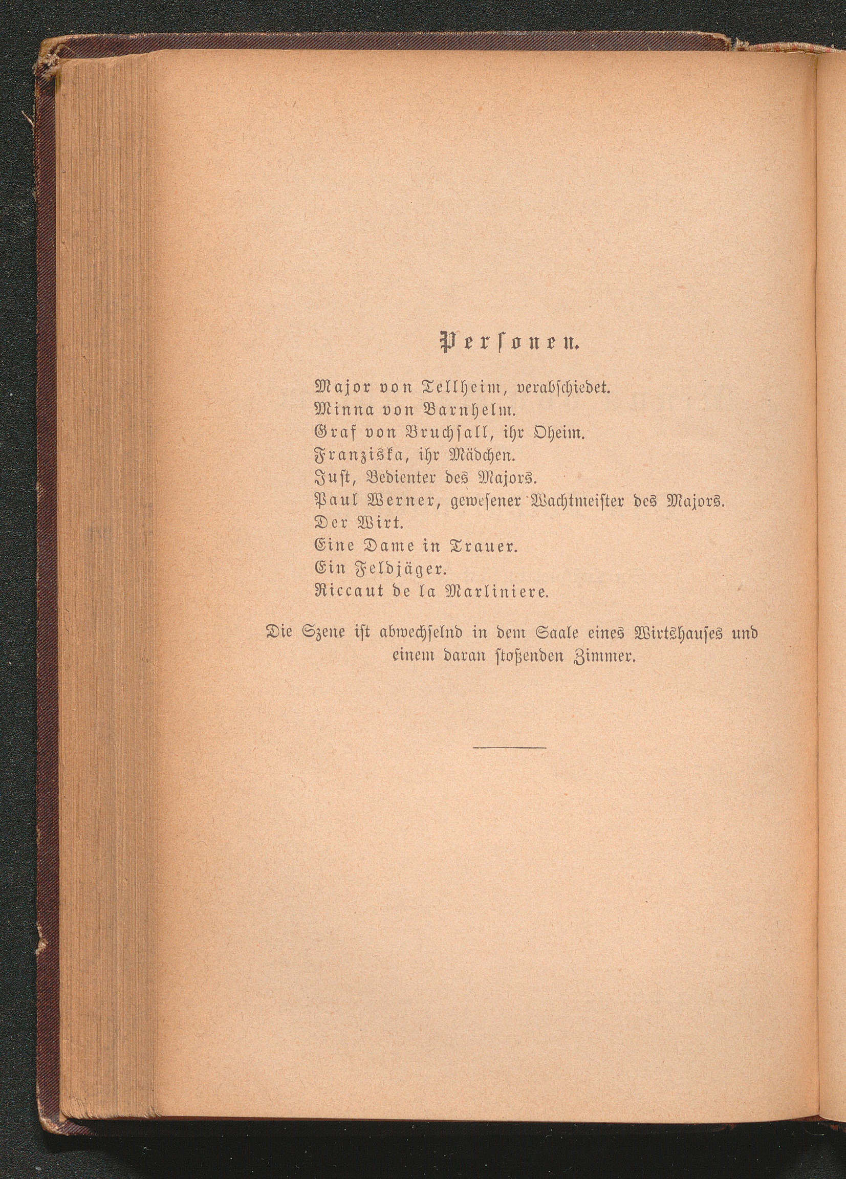 Minna von Barnhelm oder Das Soldatenglück. Ein Lustspiel in fünf Aufzügen.