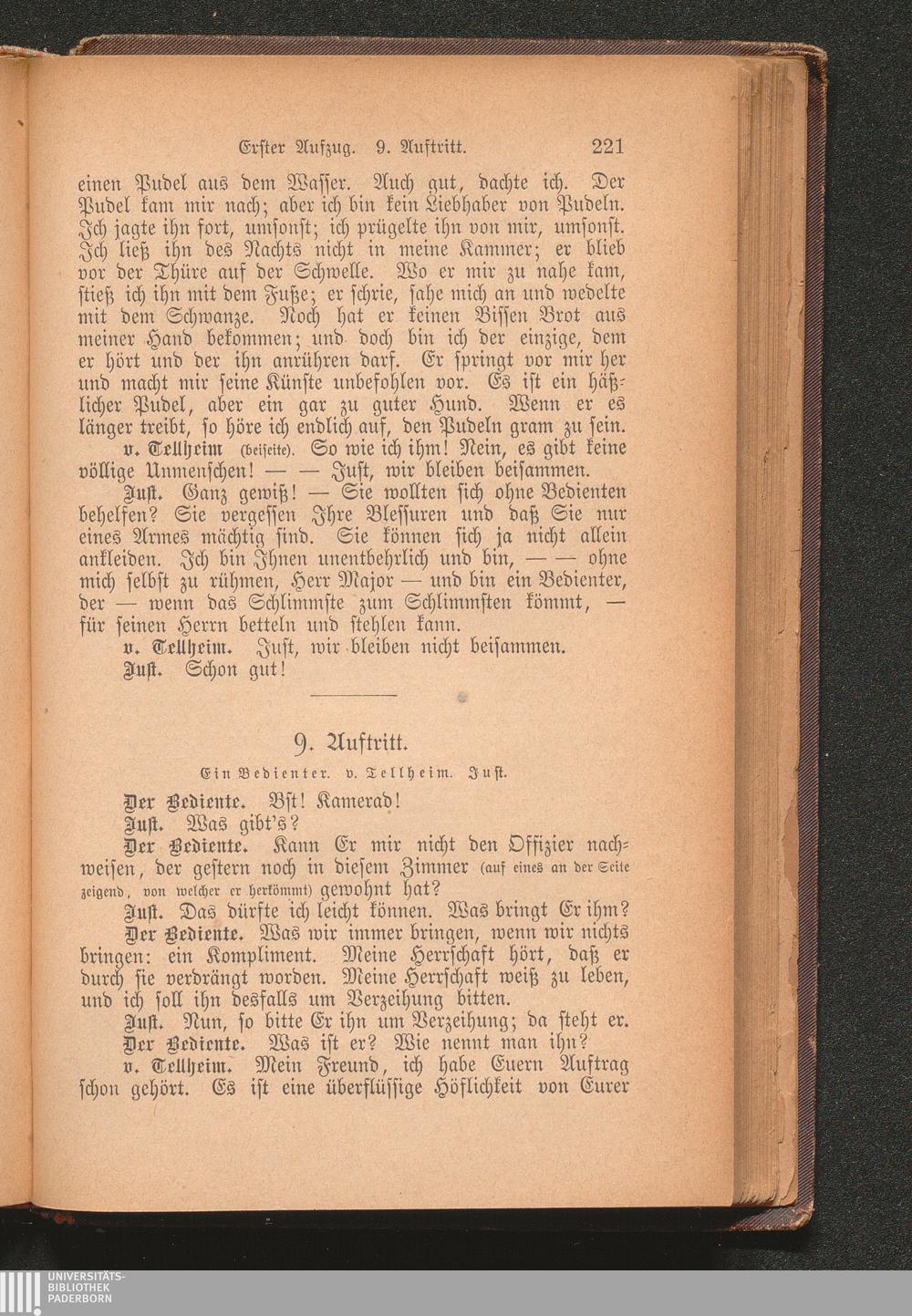 9. Auftritt. Ein Bedienter. v. Tellheim. Just.