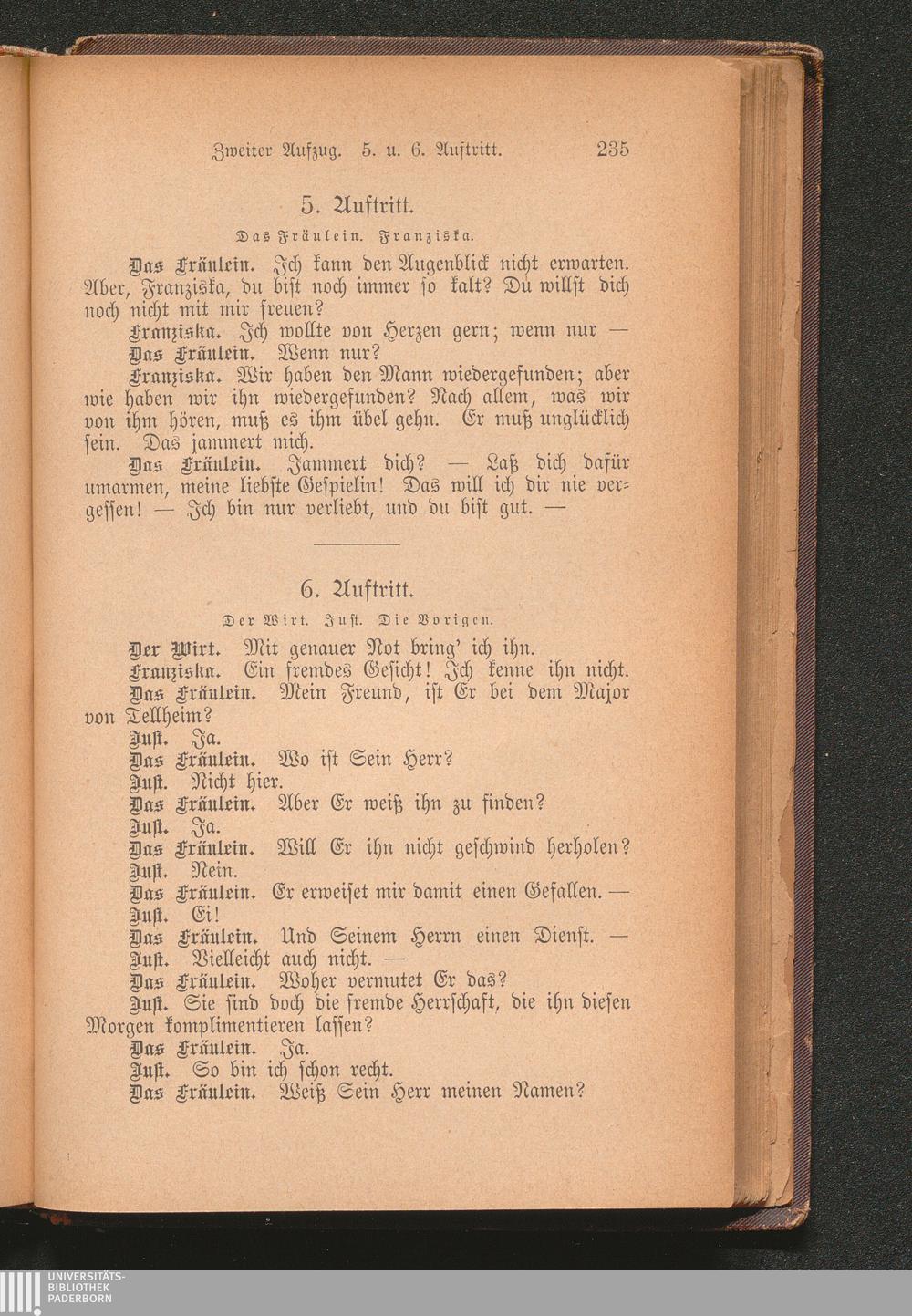 Minna von Barnhelm oder Das Soldatenglück. Ein Lustspiel in fünf Aufzügen.