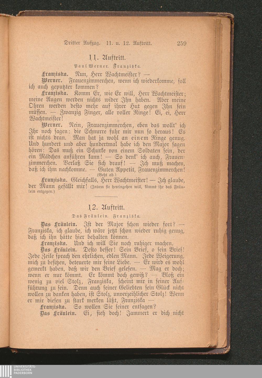 Minna von Barnhelm oder Das Soldatenglück. Ein Lustspiel in fünf Aufzügen.