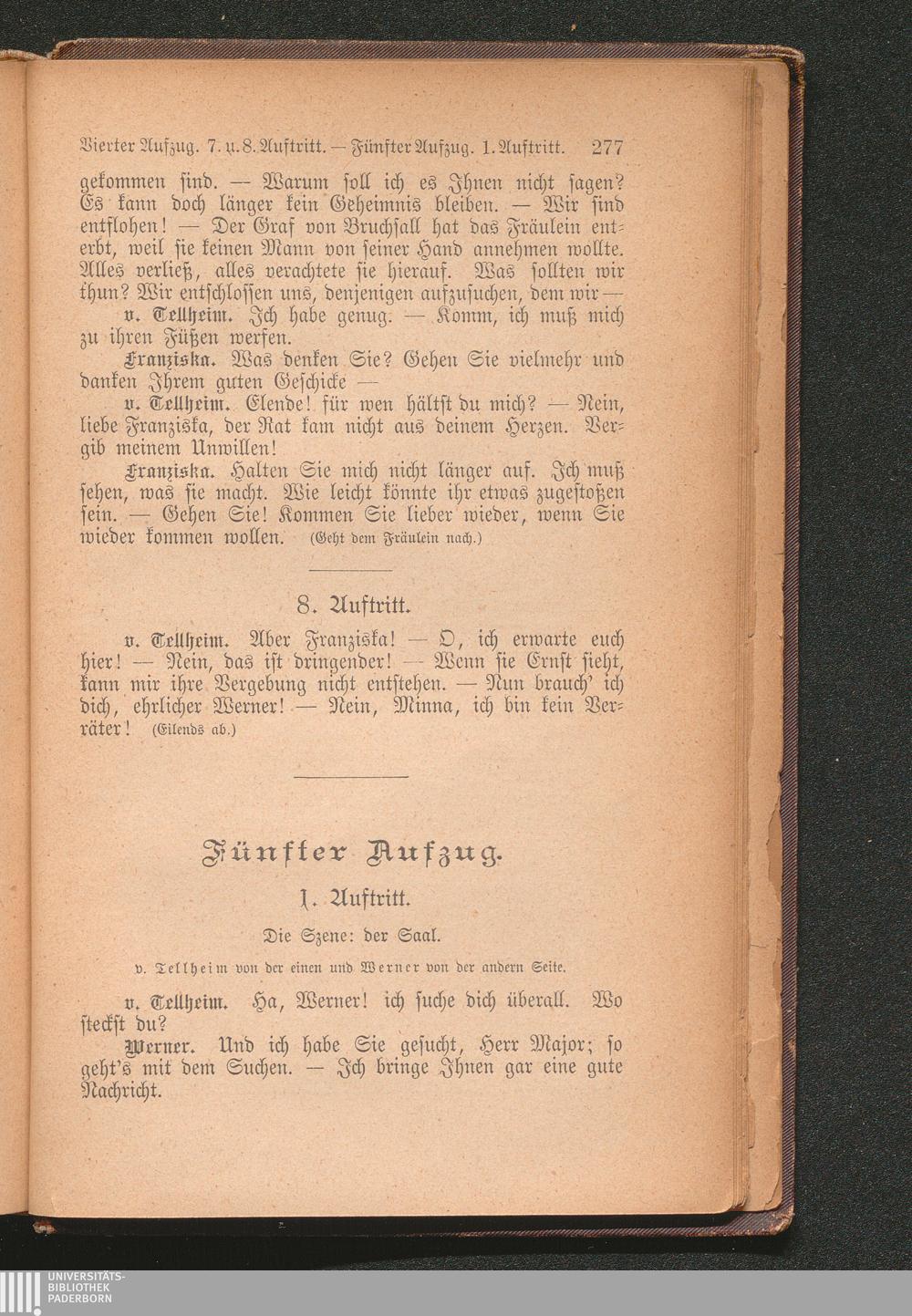 Minna von Barnhelm oder Das Soldatenglück. Ein Lustspiel in fünf Aufzügen.