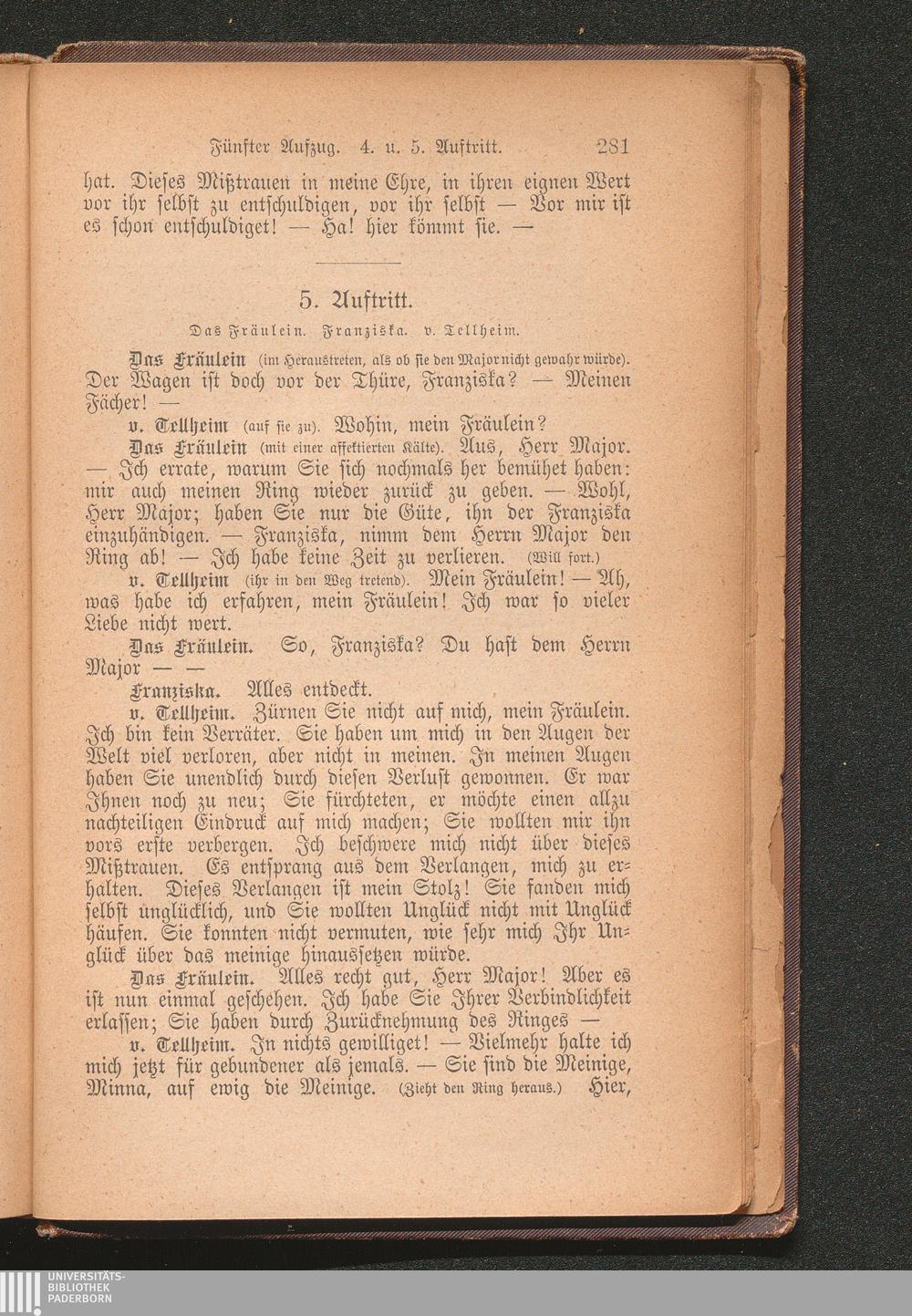 Minna von Barnhelm oder Das Soldatenglück. Ein Lustspiel in fünf Aufzügen.