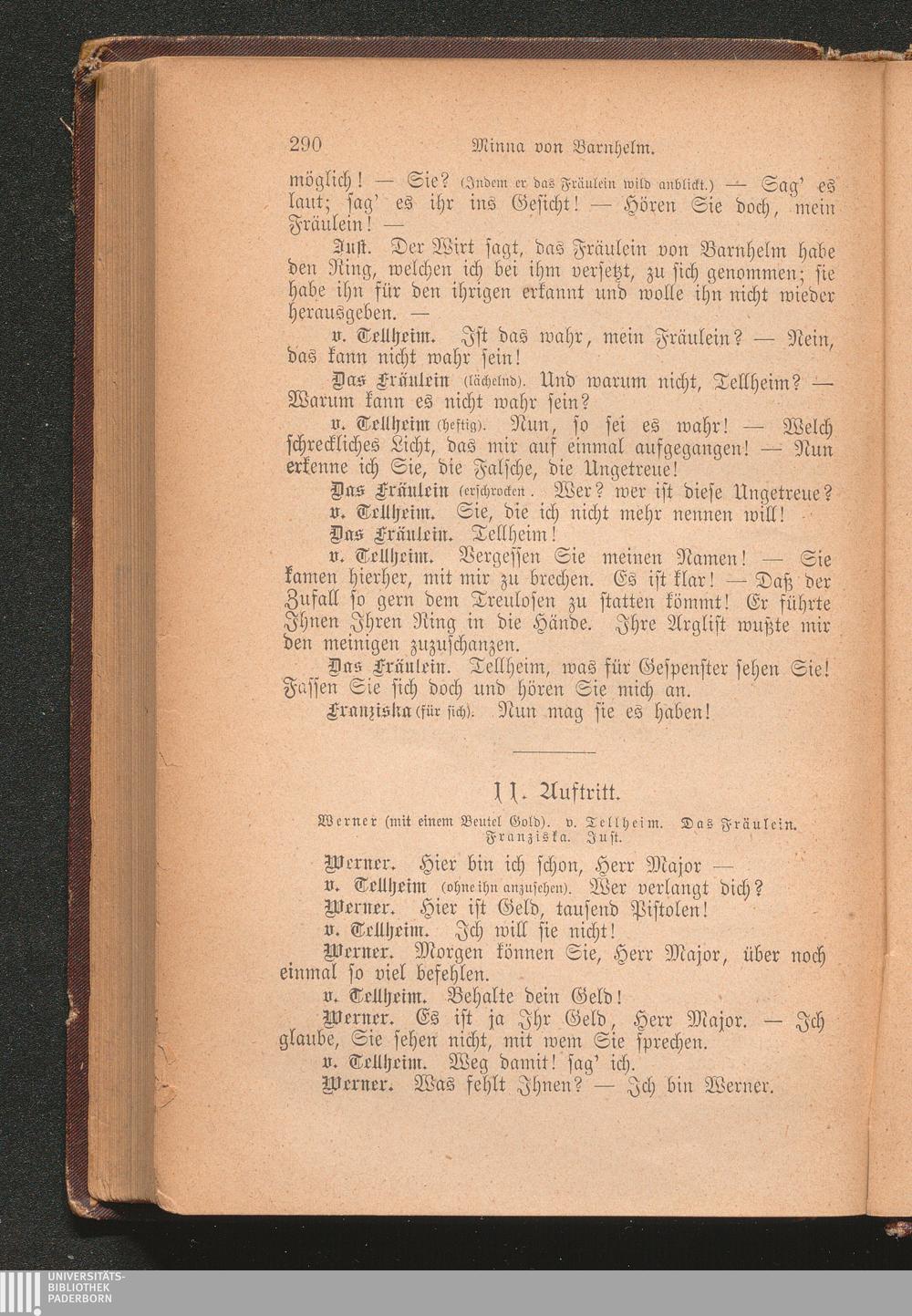 11. Auftritt. Werner (mit einem Beutel Gold). v. Tellheim. Das Fräulein. Franziska.[...]