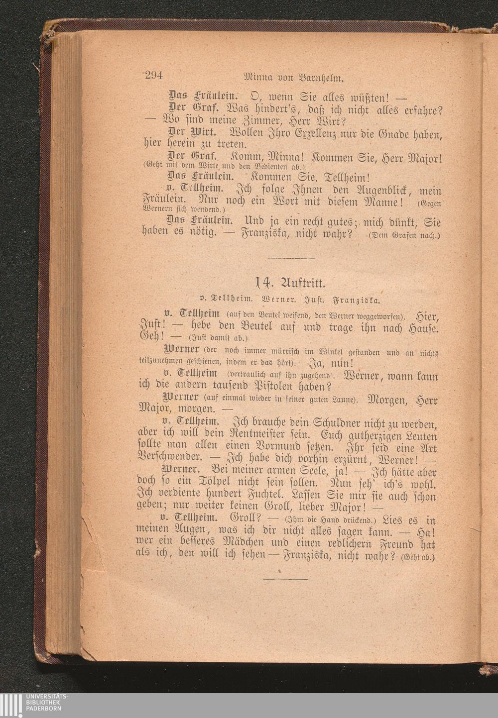 Minna von Barnhelm oder Das Soldatenglück. Ein Lustspiel in fünf Aufzügen.