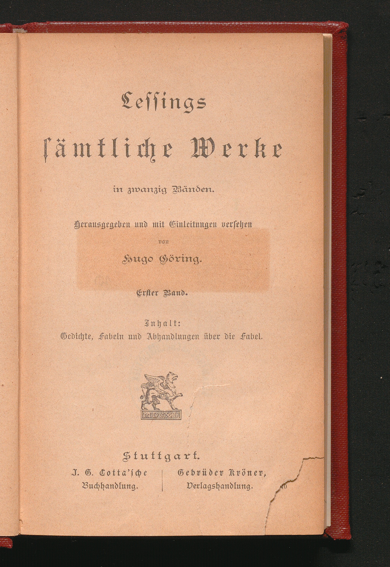 1 (1882) Gedichte, Fabeln und Abhandlungen über die Fabel