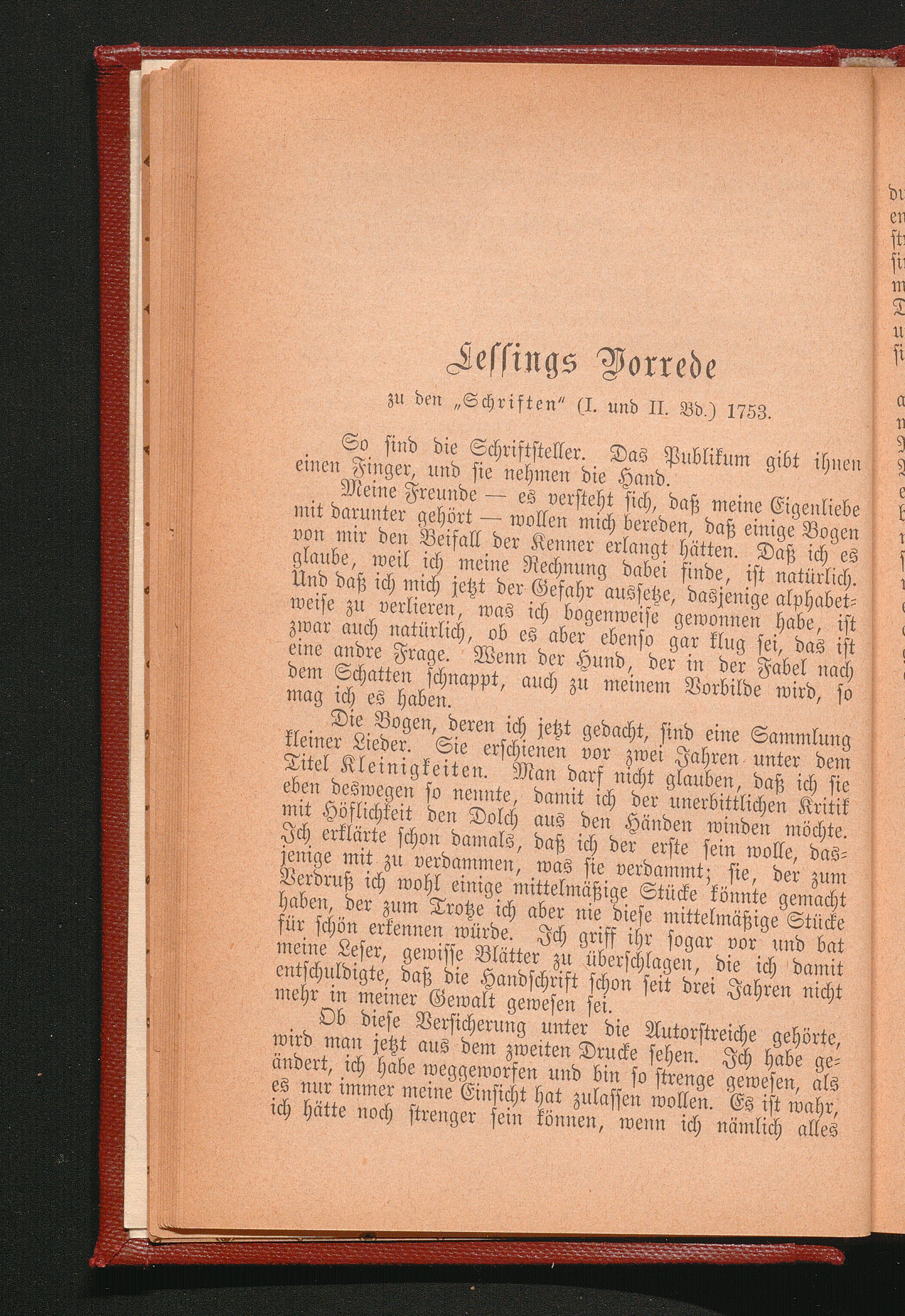 Lessings Vorrede zu den Schriften (I. und II. Bd.) 1753.