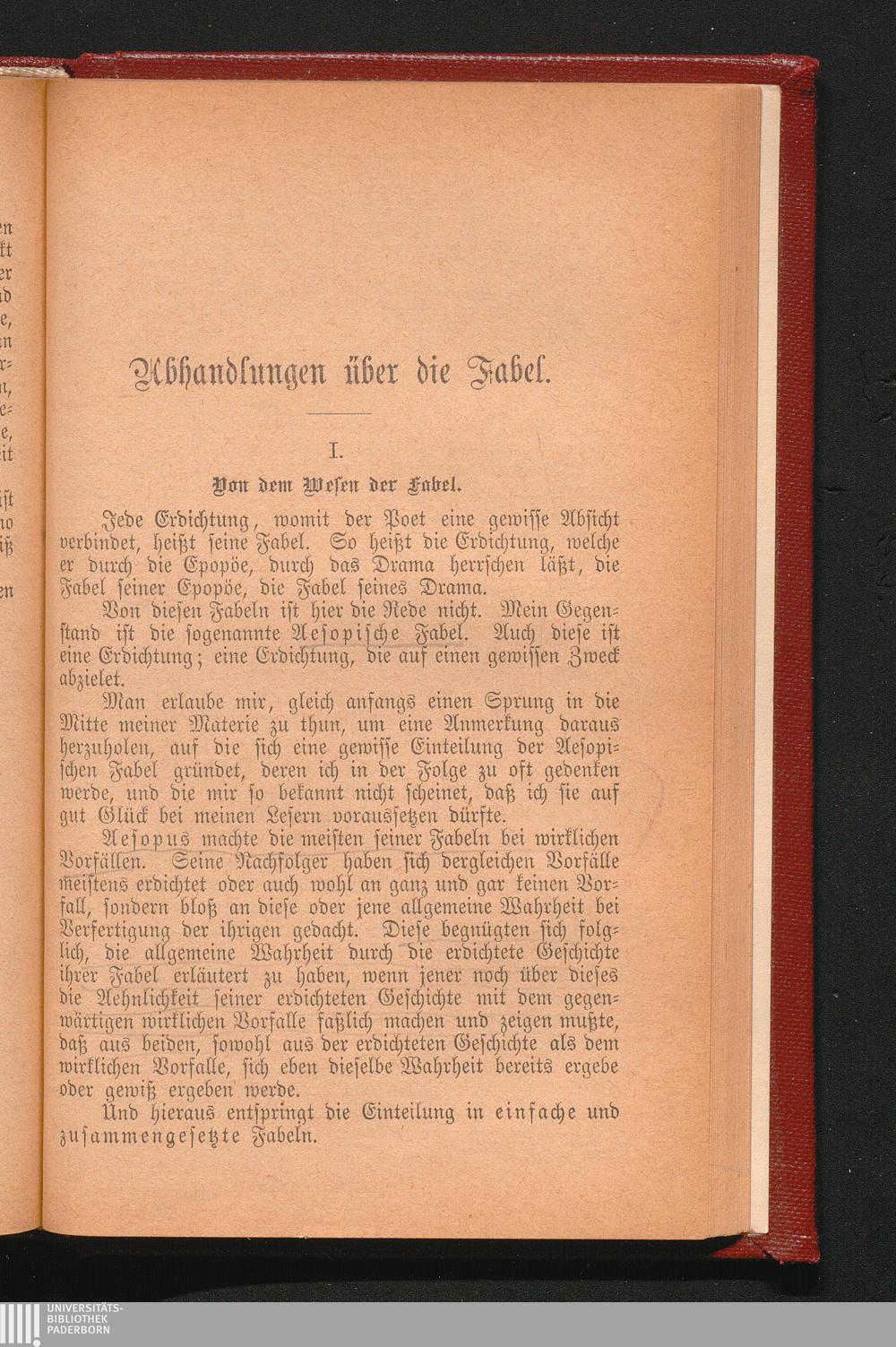 I. Von dem Wesen der Fabel.