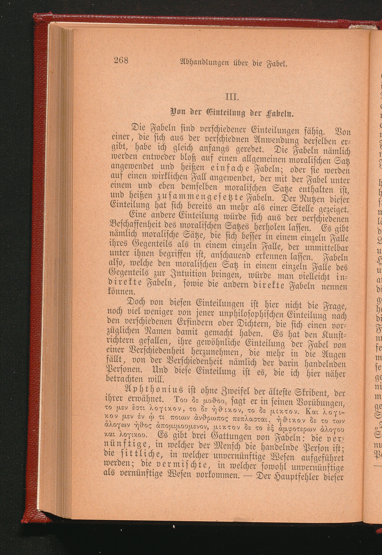 III. Von der Einteilung der Fabeln.
