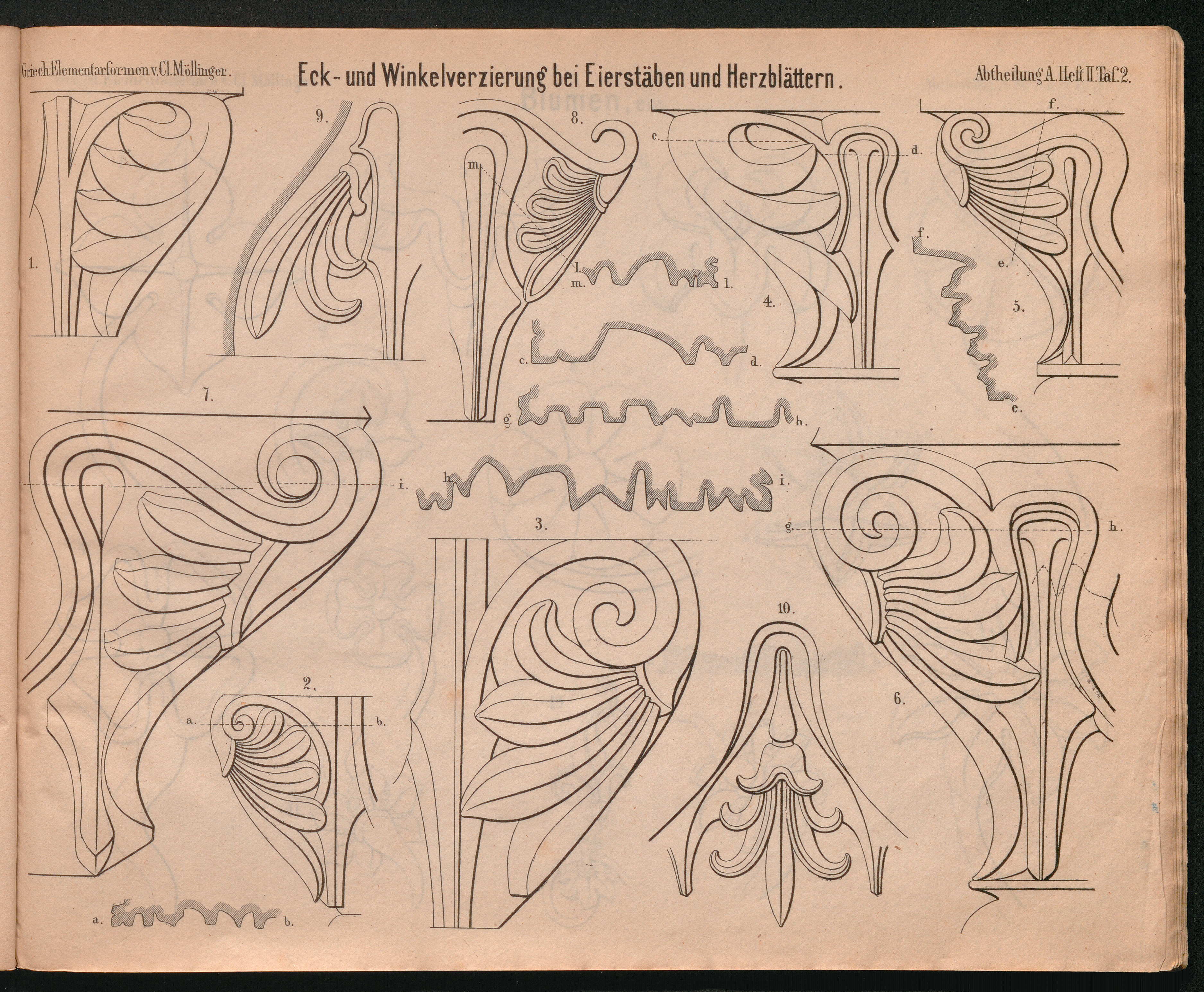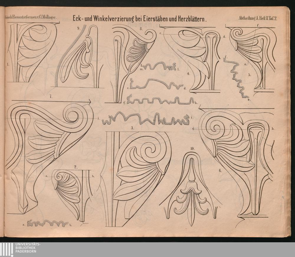 Taf. 2. Eck- und Winkelverzierungen bei Eierstäben und Herzblättern.