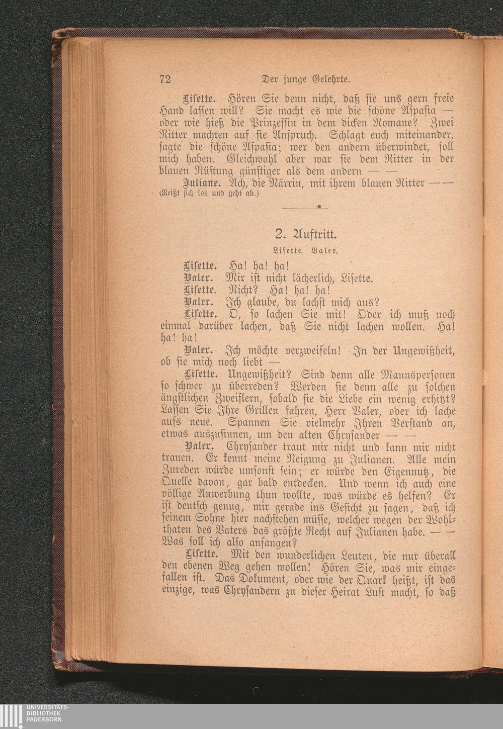 Die junge Gelehrte. Ein Lustspiel in drei Aufzügen.