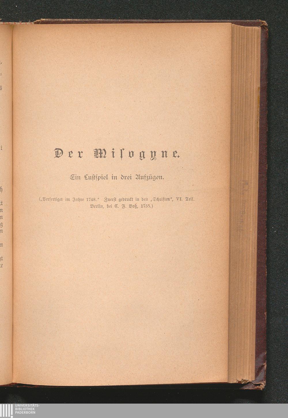 Der Misogyne. Ein Lustspiel in drei Aufzügen.