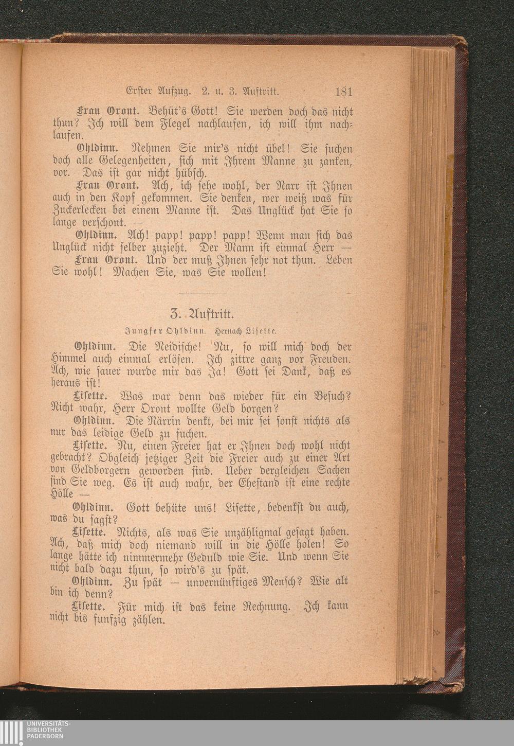 Die alte Jungfer. Ein Lustspiel in drei Aufzügen.