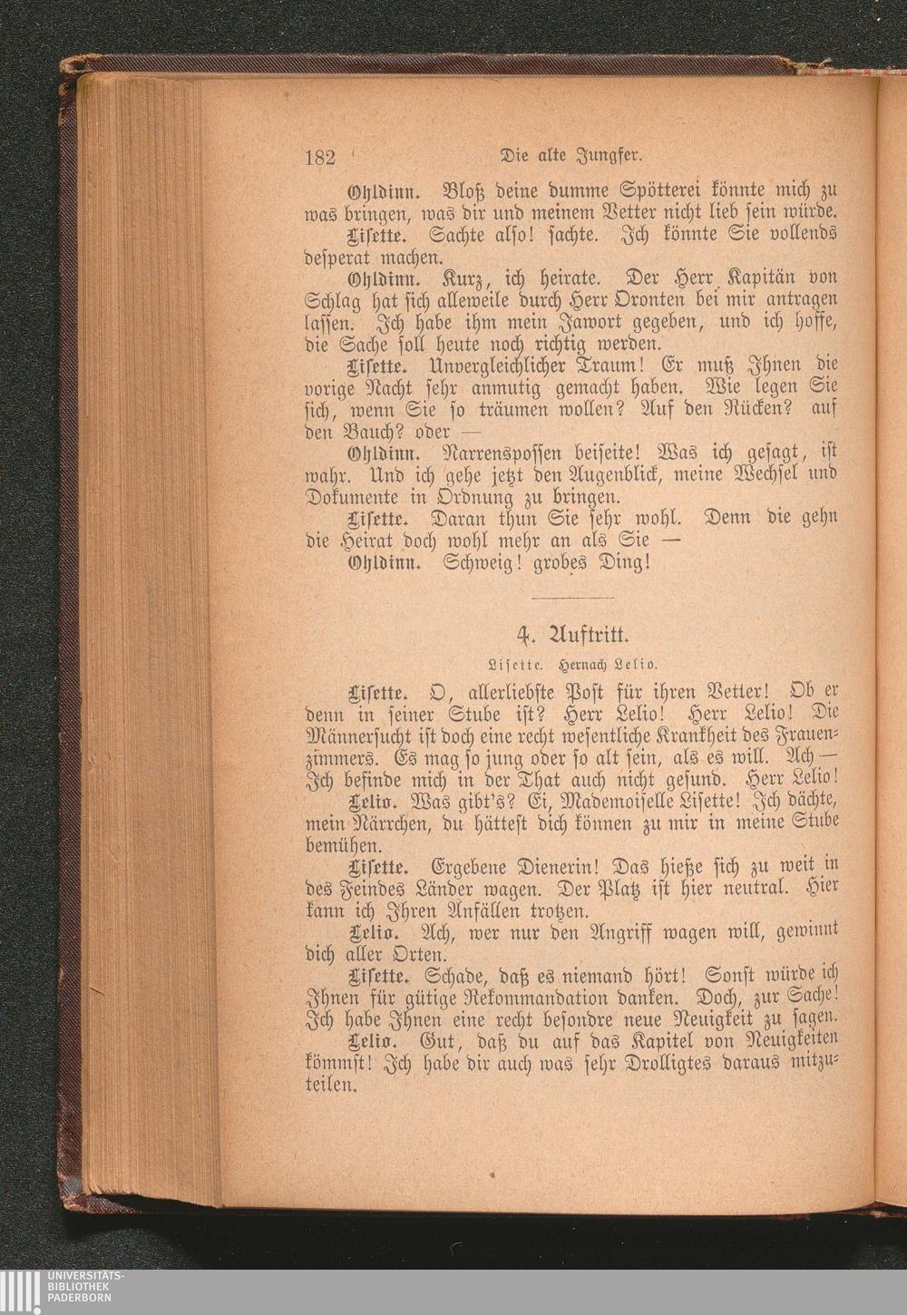 Die alte Jungfer. Ein Lustspiel in drei Aufzügen.
