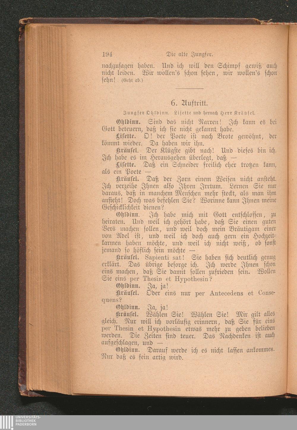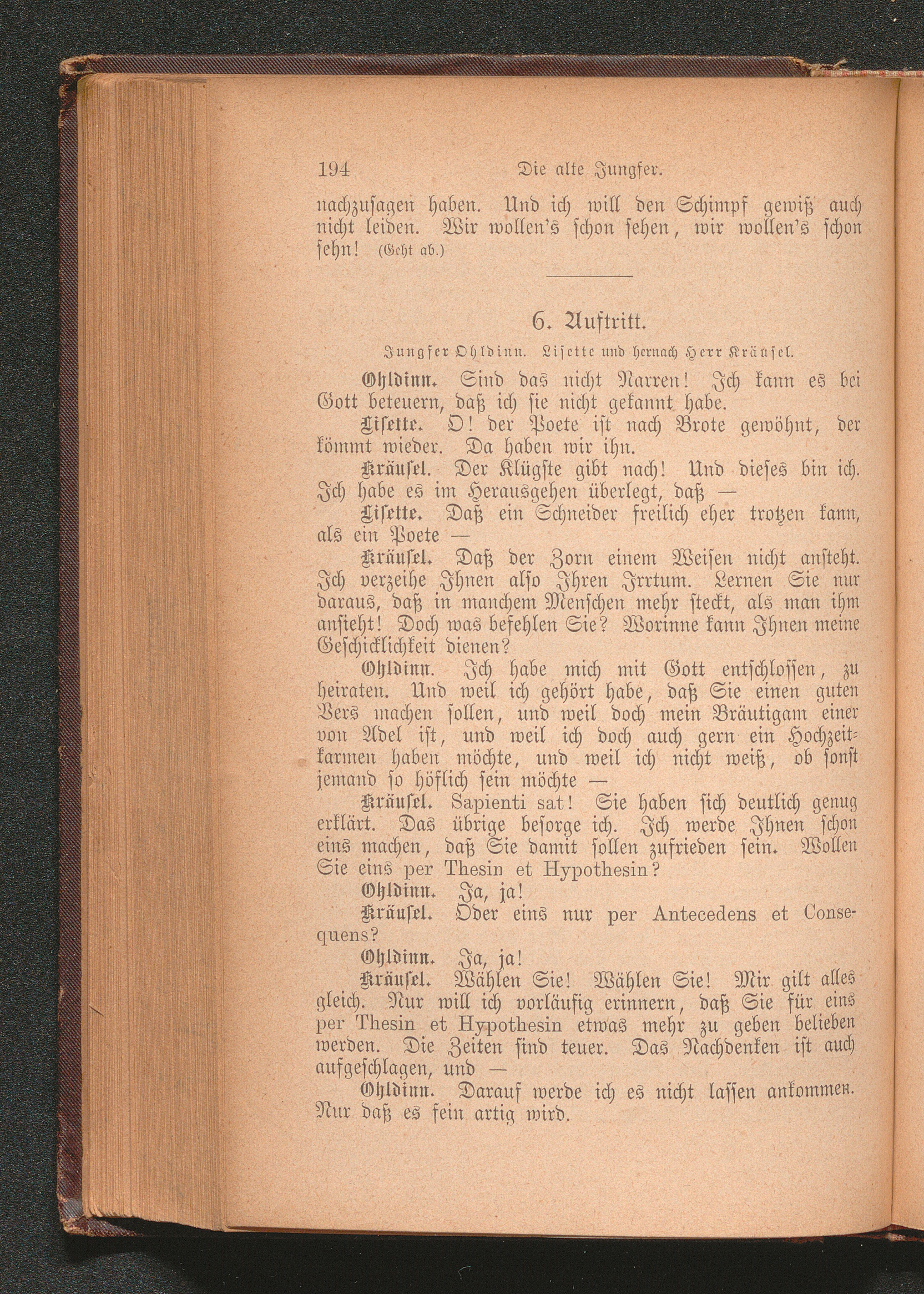 6. Auftritt. Jungfer Ohldinn. Lisette und hernach Herr Kräusel.
