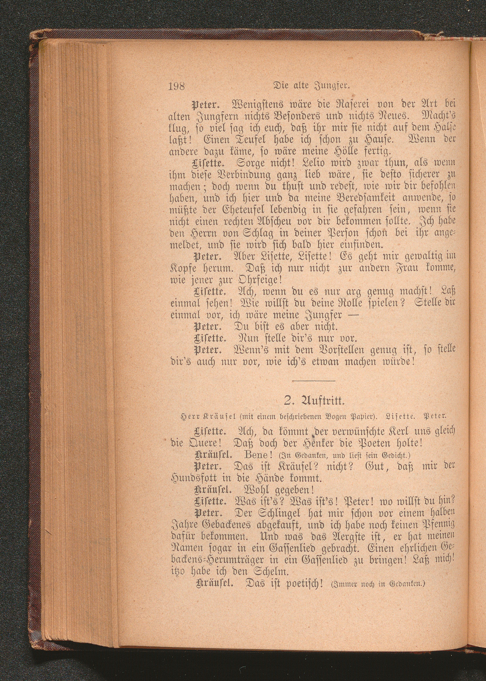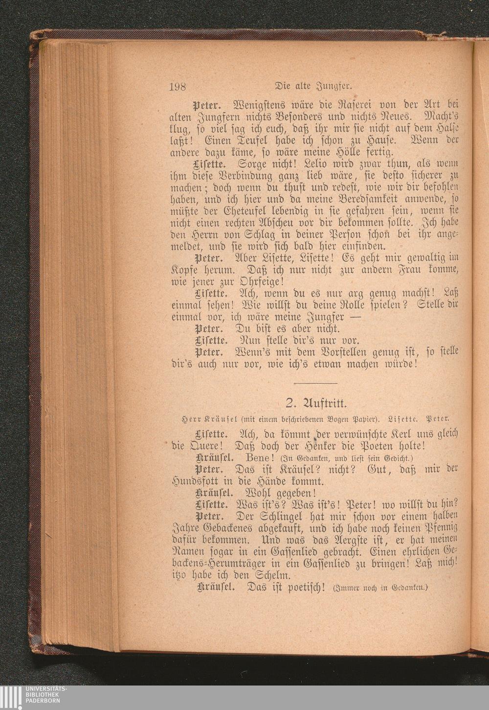 2. Auftritt. Herr Kräusel (mit einem beschriebenen Bogen Papier). Lisette. Peter[...]