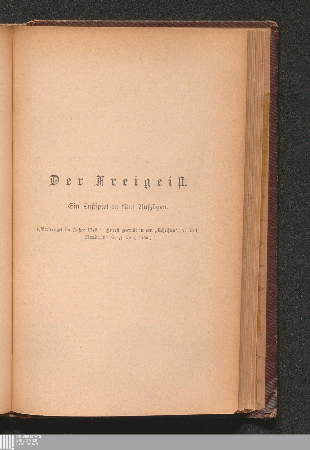 Der Freigeist. Ein Lustspiel in fünf Aufzügen.