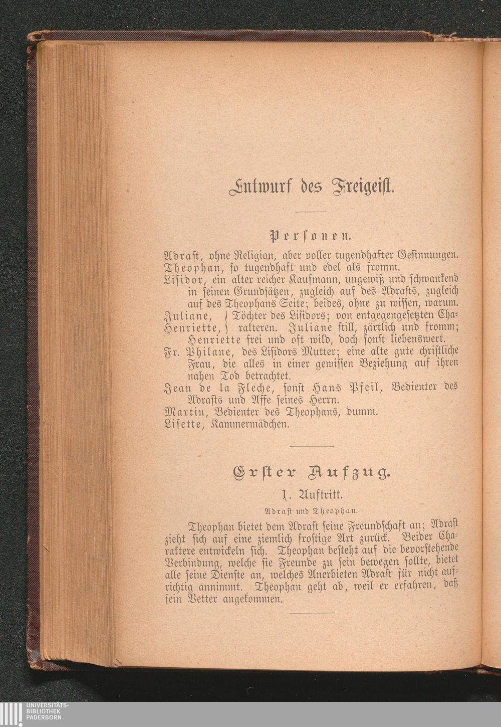 Der Freigeist. Ein Lustspiel in fünf Aufzügen.