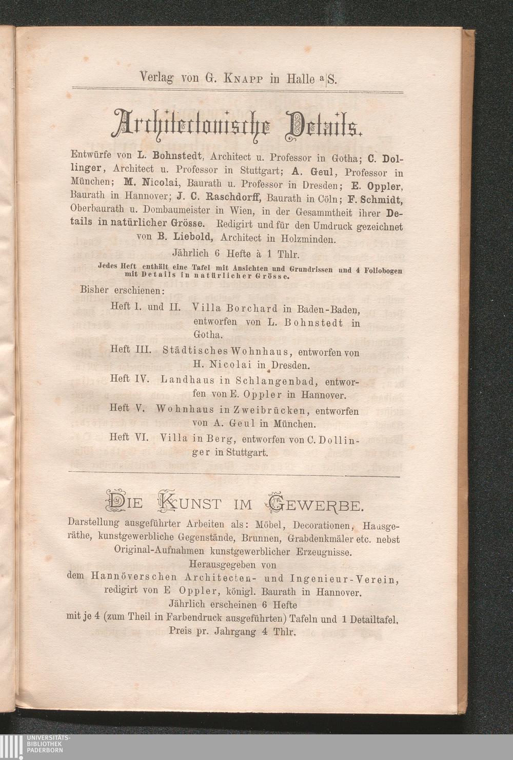nach Originalaufnahmen bearbeitet von H. Liebold, Architekt in Holzminden