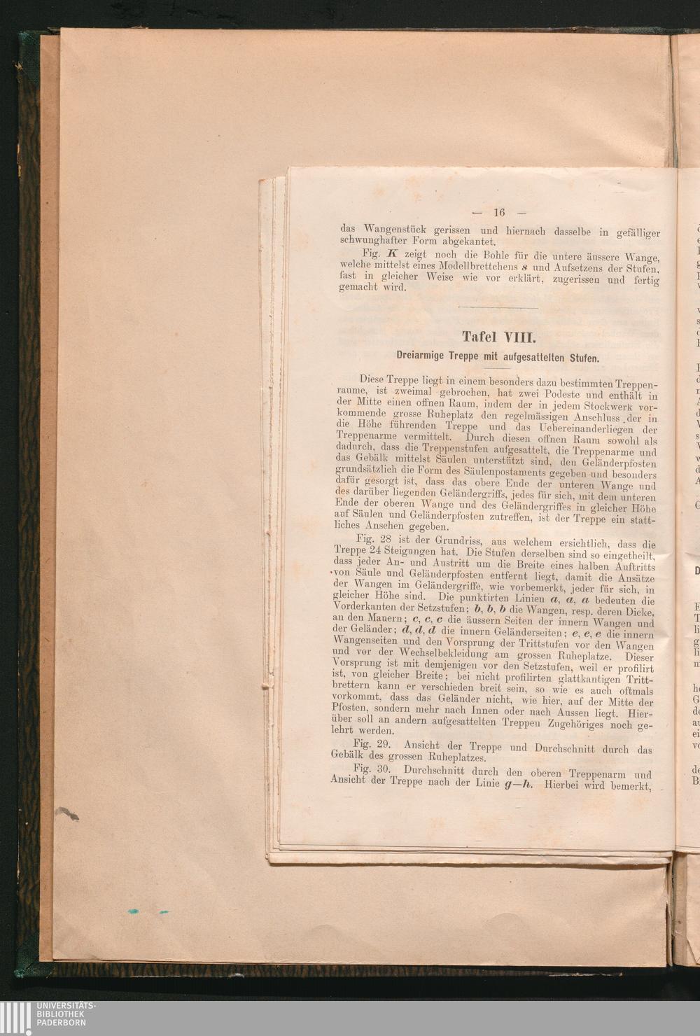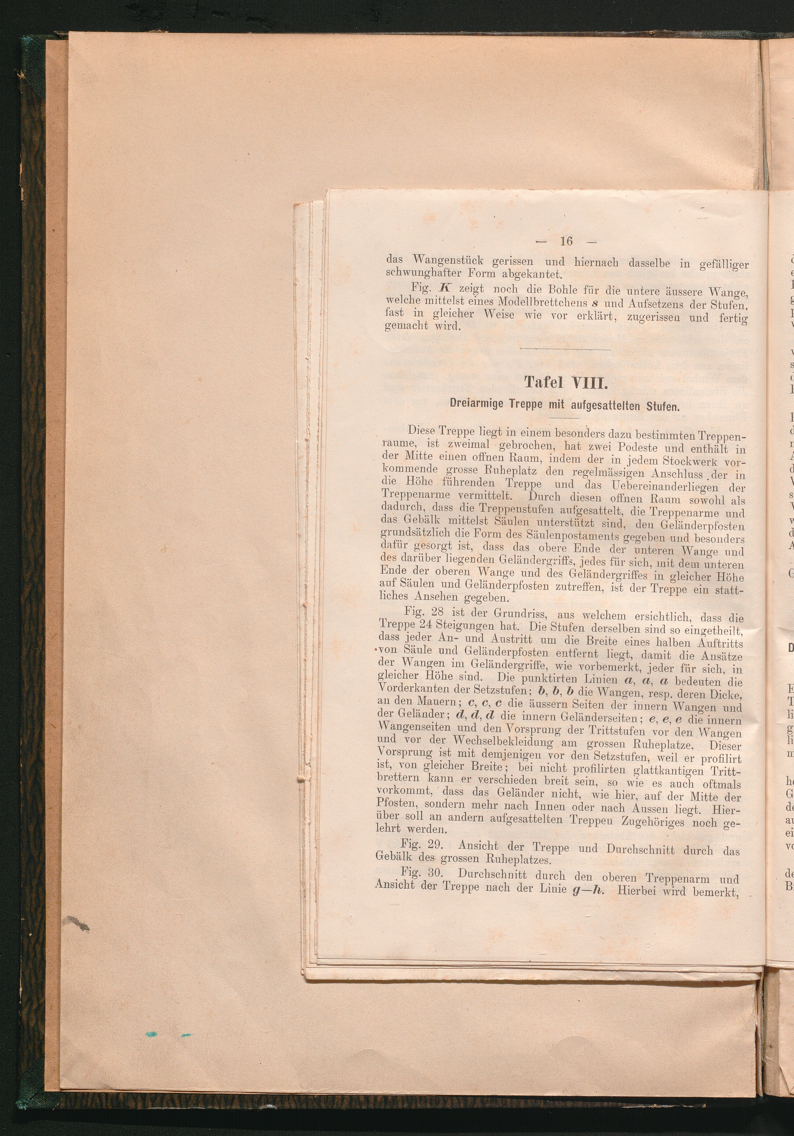 Tafel VIII. Dreiarmige Treppe mit aufgesattelten Stufen.