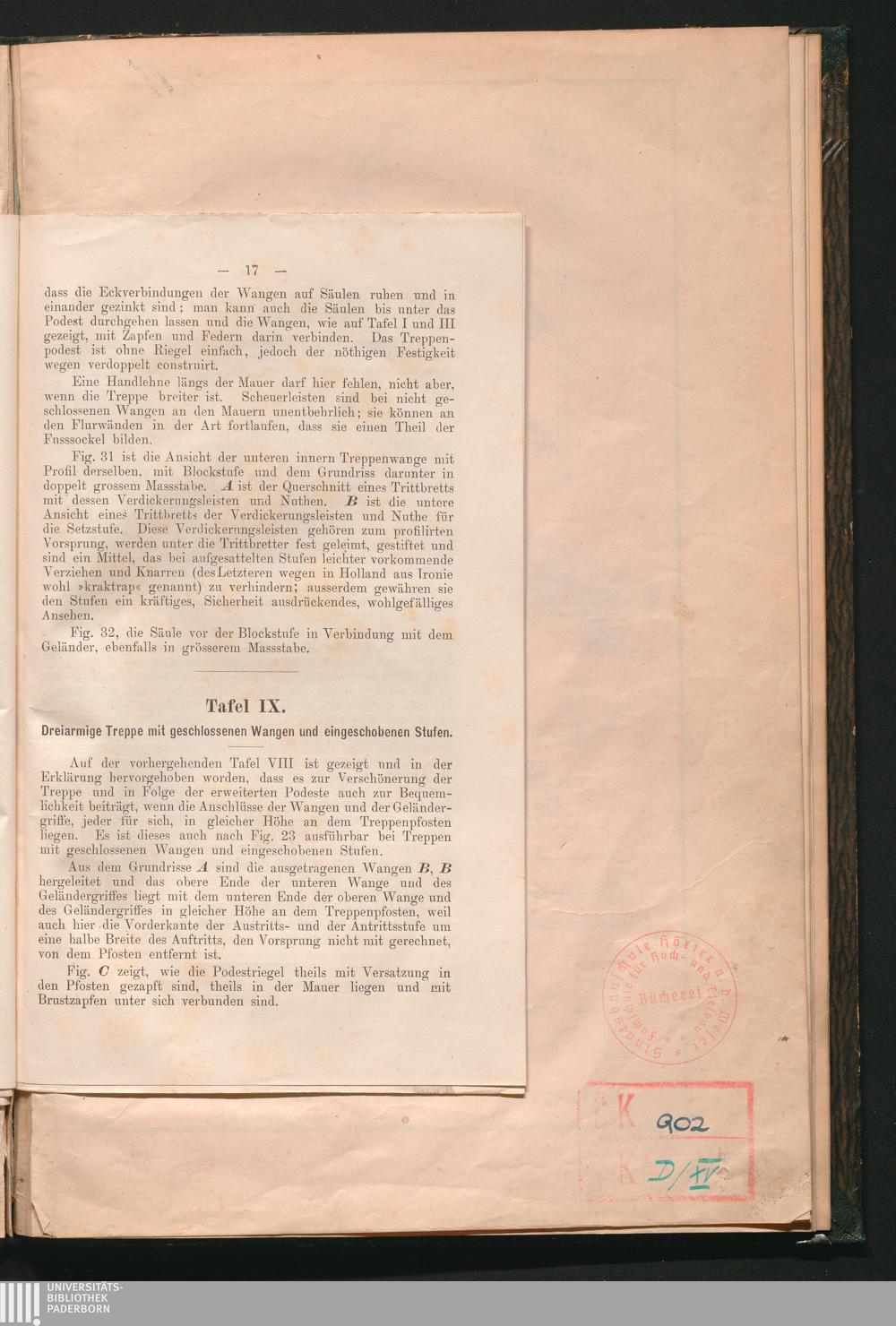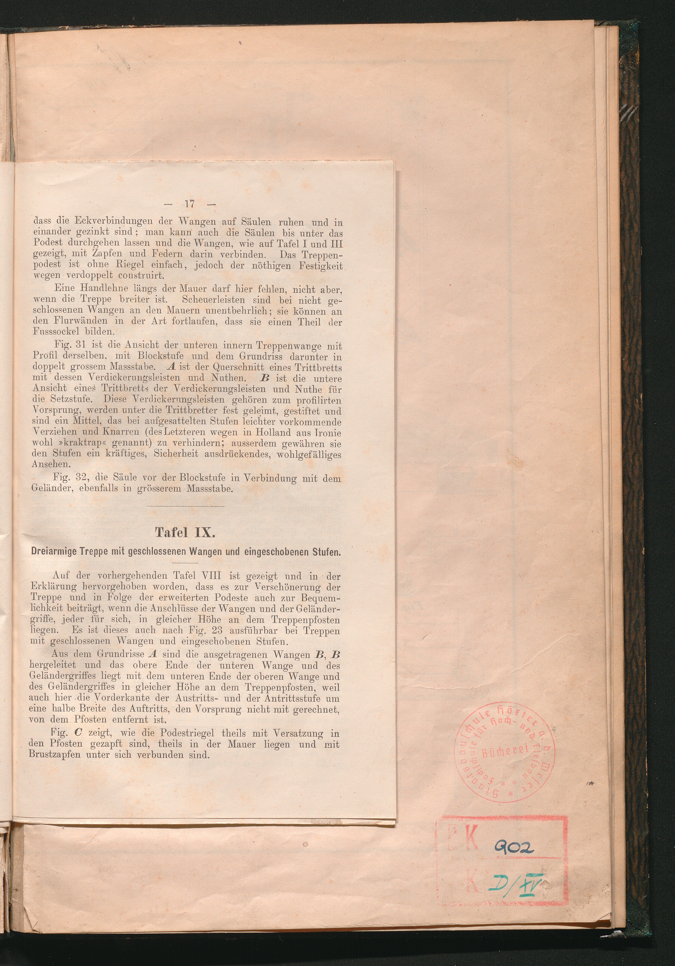 Tafel IX. Dreiarmige Treppe mit geschlossenen Wangen und eingeschobenen Stufen.