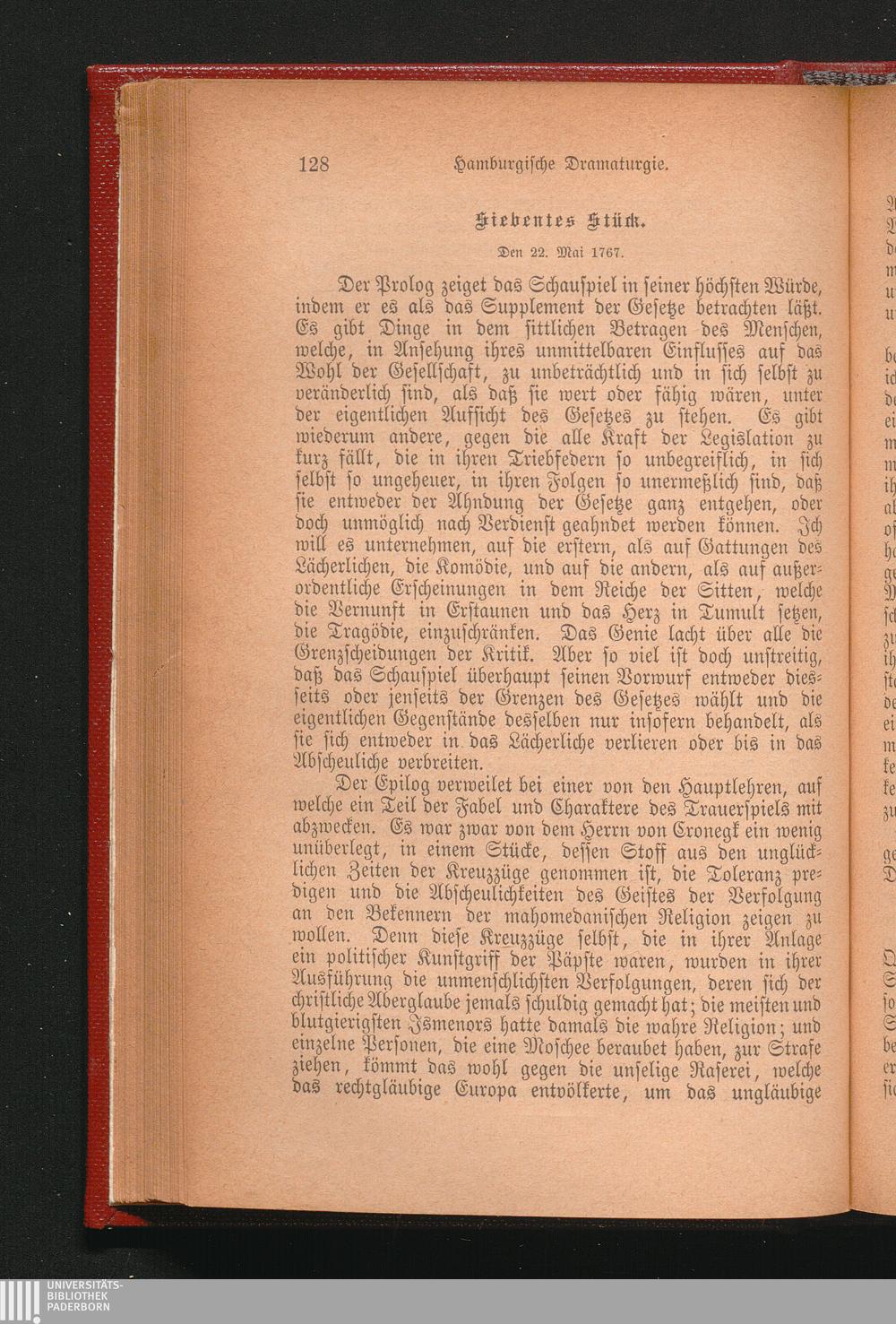 Hamburgische Dramaturgie. Erster Band. 1767.