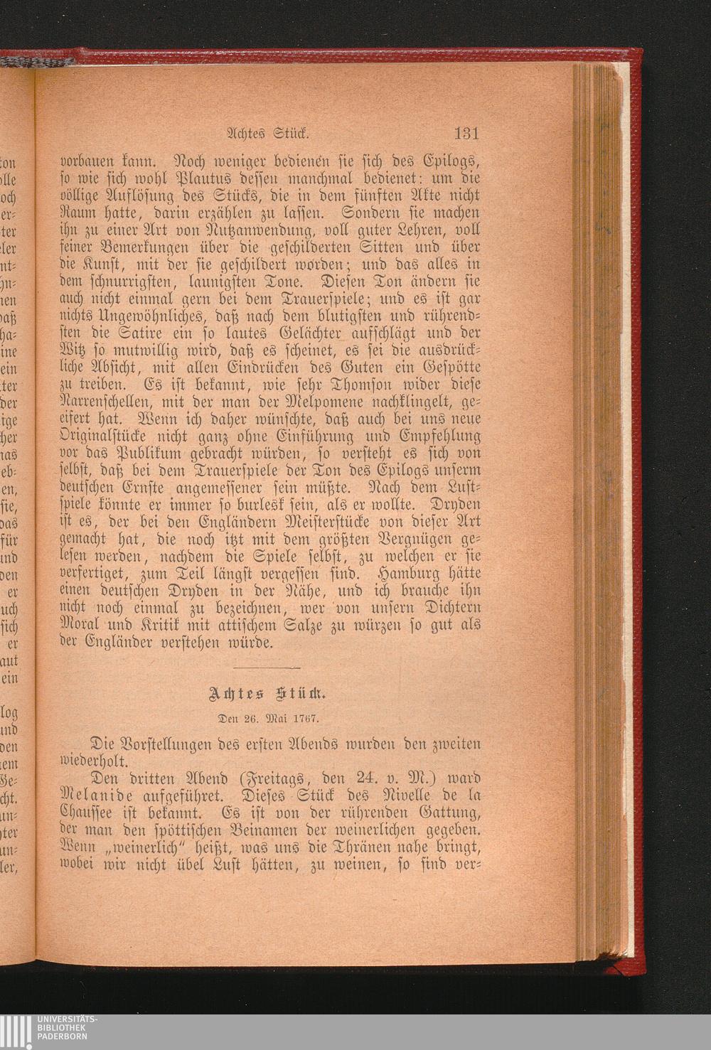 Hamburgische Dramaturgie. Erster Band. 1767.