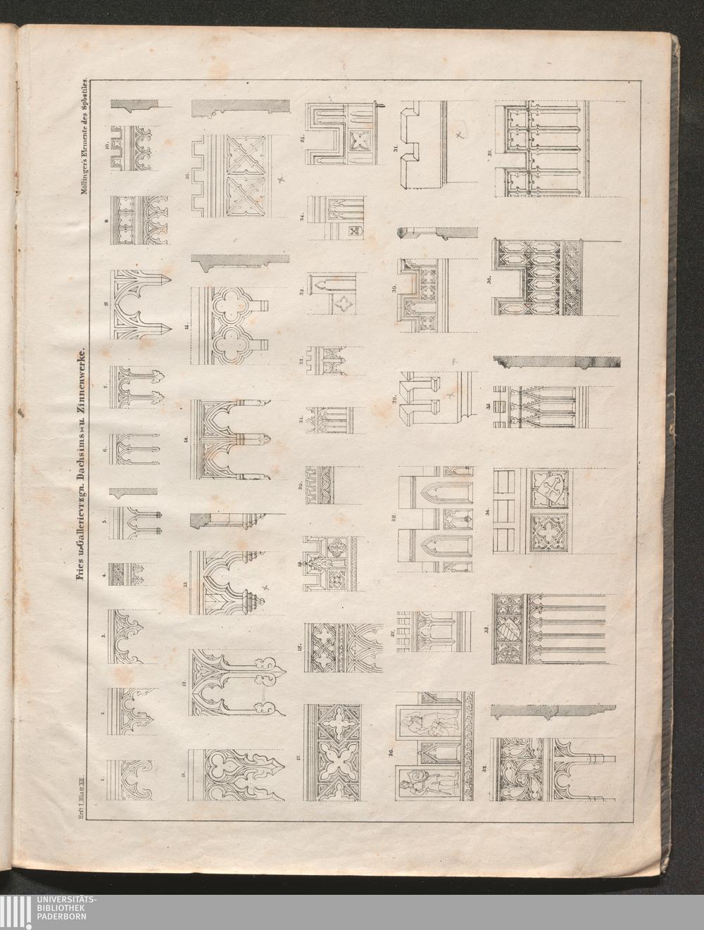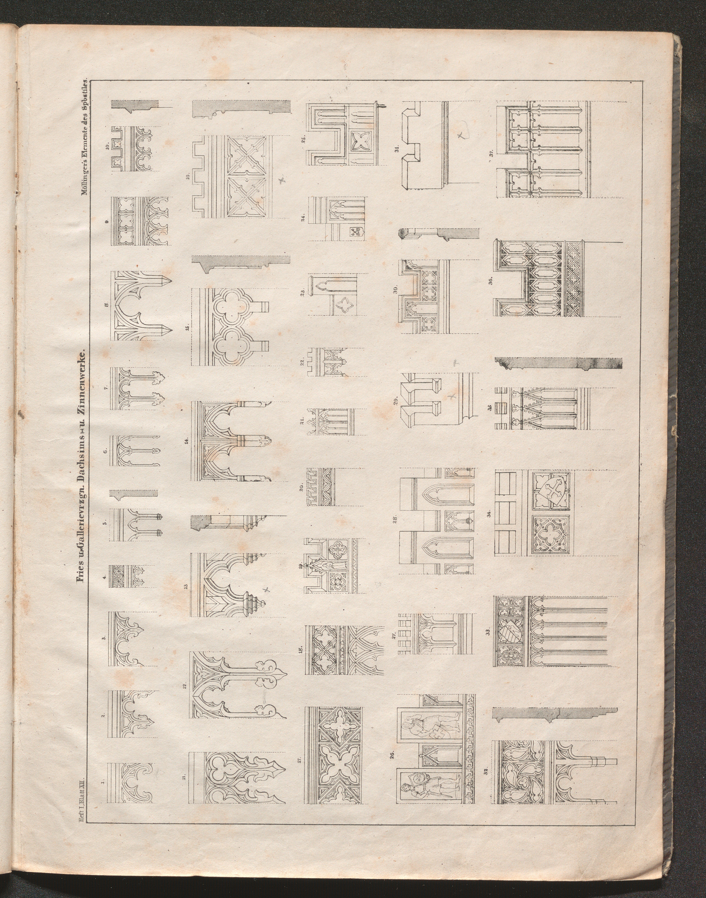 Heft I. Blatt XII. Fries u. Gallerievrzgn. Dachsims- u. Zinnenwerke.