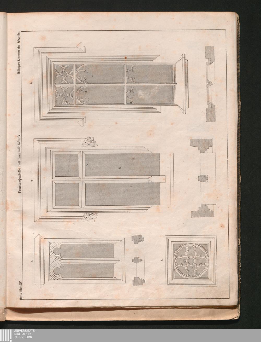 Heft V, Blatt XV. Fenstergestelle mit Schuss.
