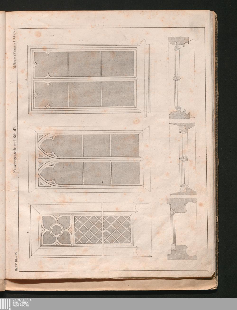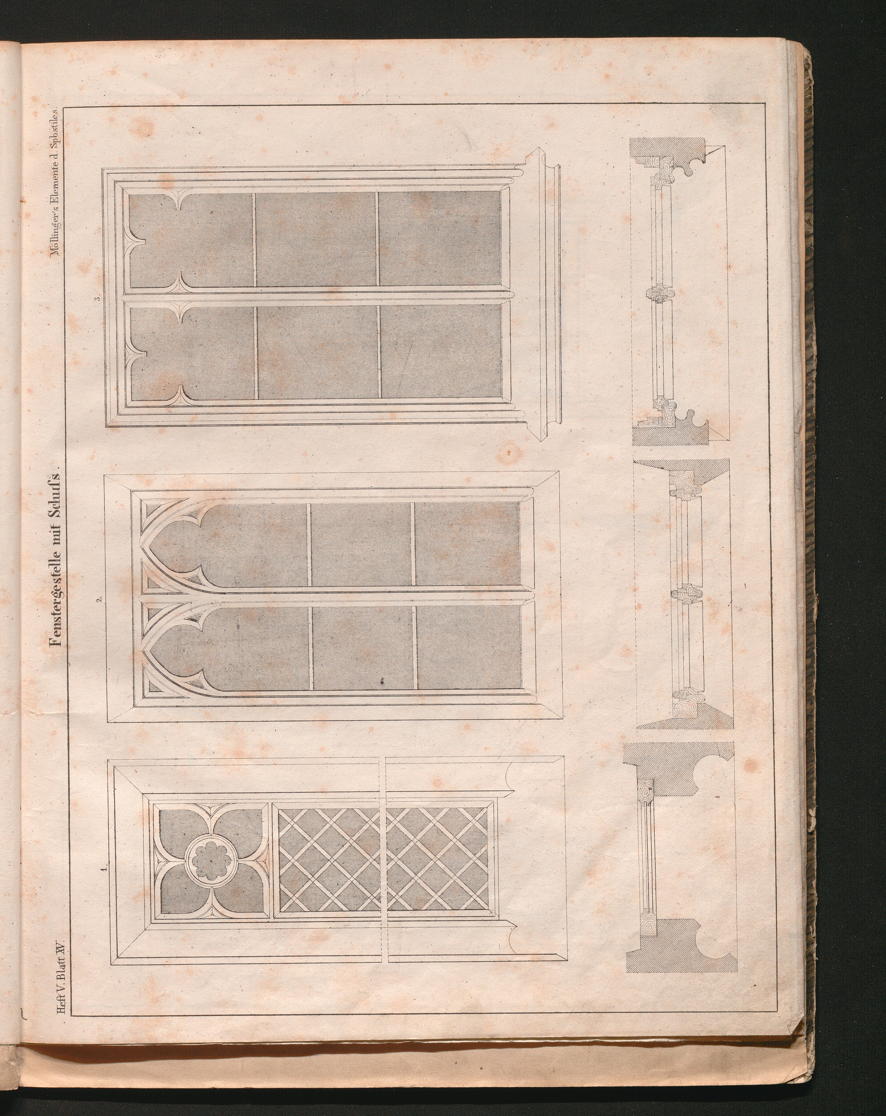 Heft V, Blatt XV. Fenstergestelle mit Schuss.