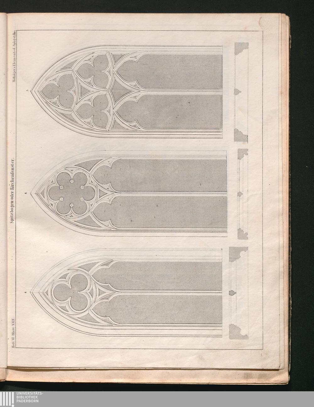 Heft VI. Blatt XXVII. Spitbogenfenster(Sic!) mit Masswerkverzierungen.