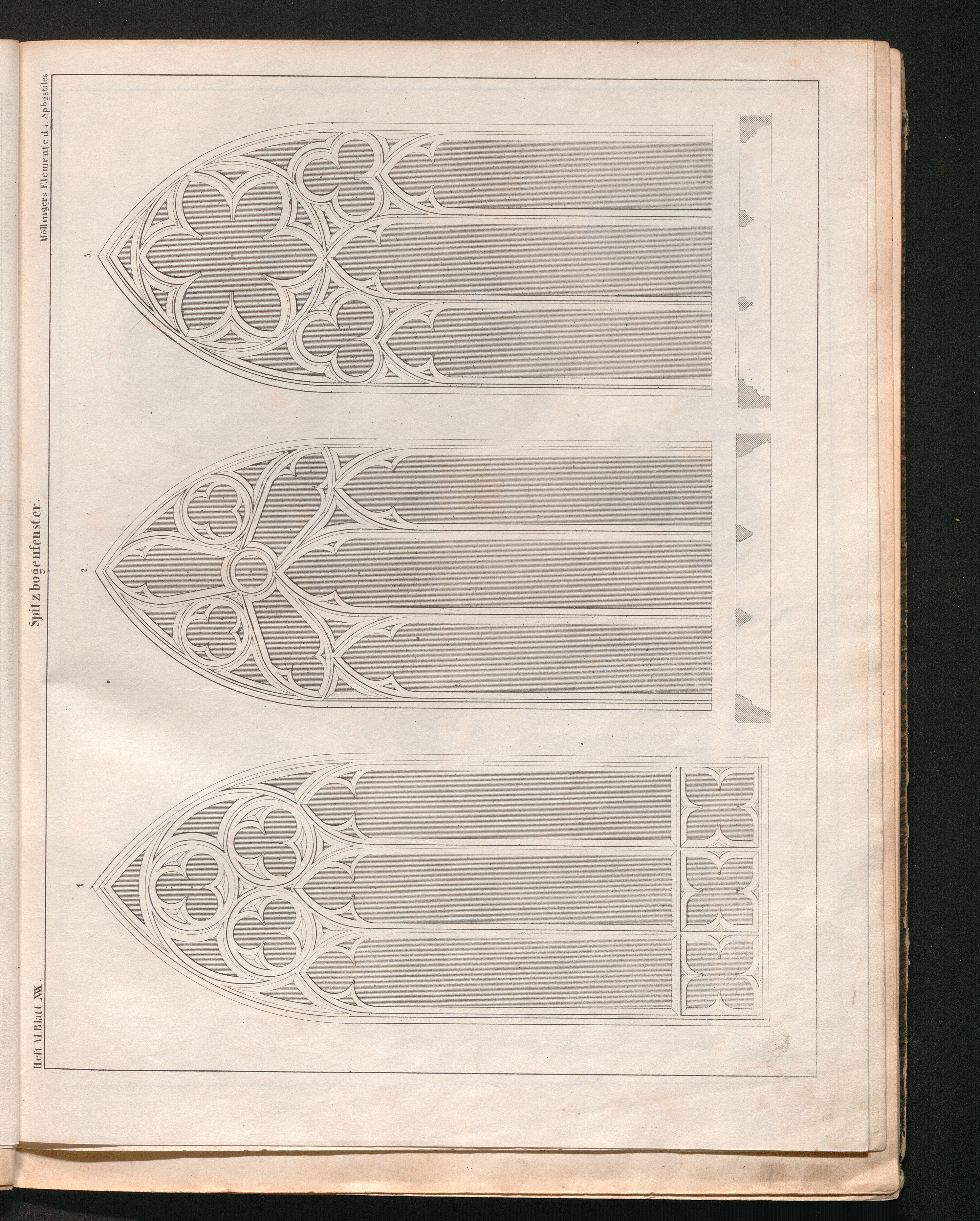 Heft VI. Blatt XXVII. Spitbogenfenster(Sic!) mit Masswerkverzierungen.