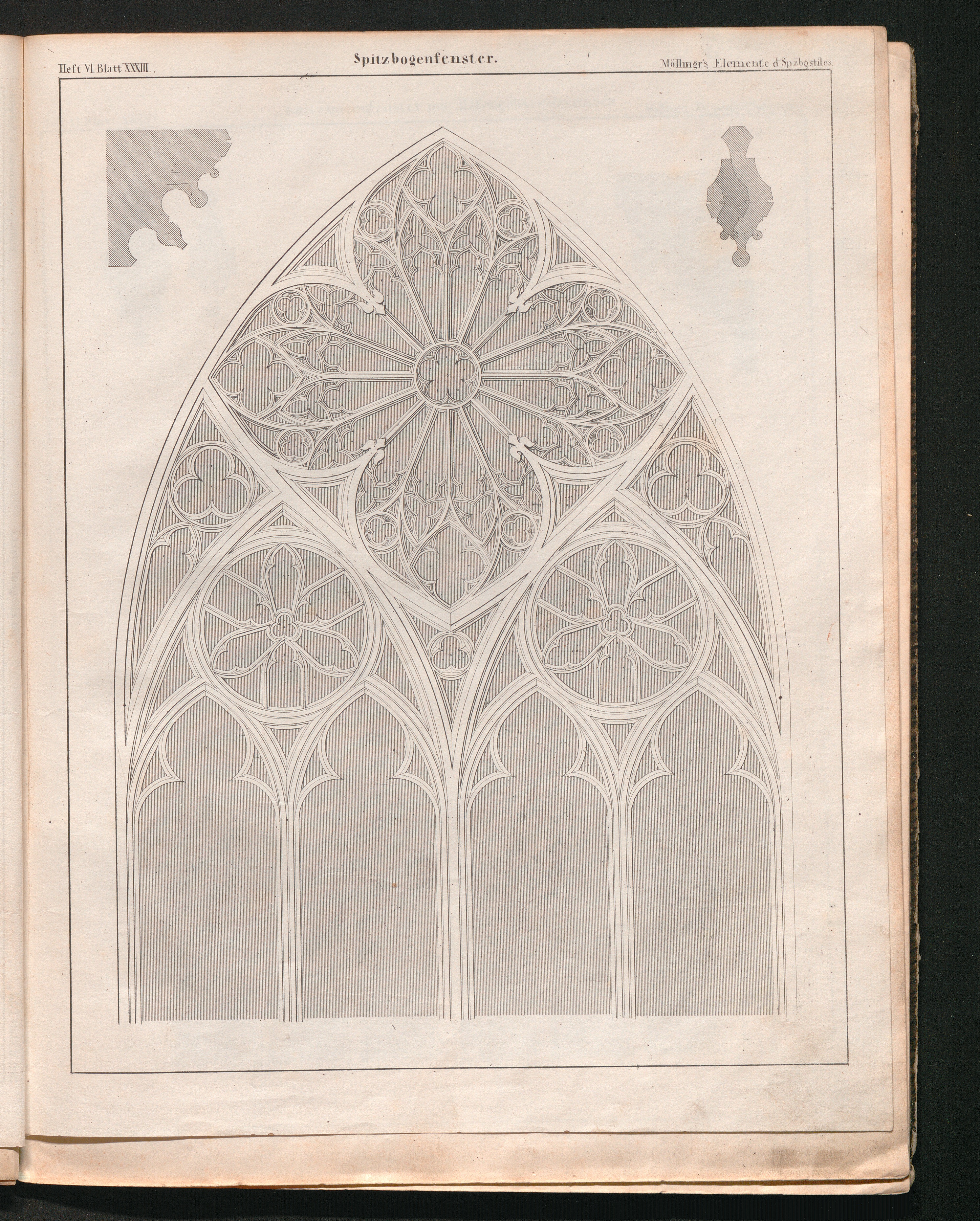 Heft VI. Blatt XXVII. Spitbogenfenster(Sic!) mit Masswerkverzierungen.