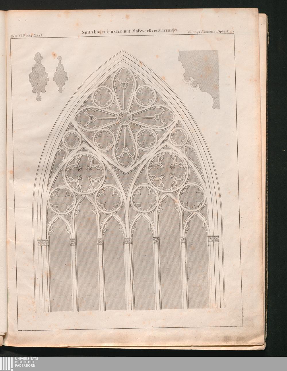 Heft VI. Blatt XXXV. [i.e. XXXIV.] Spitzbogenfenster mit Masswerkverzierungen.
