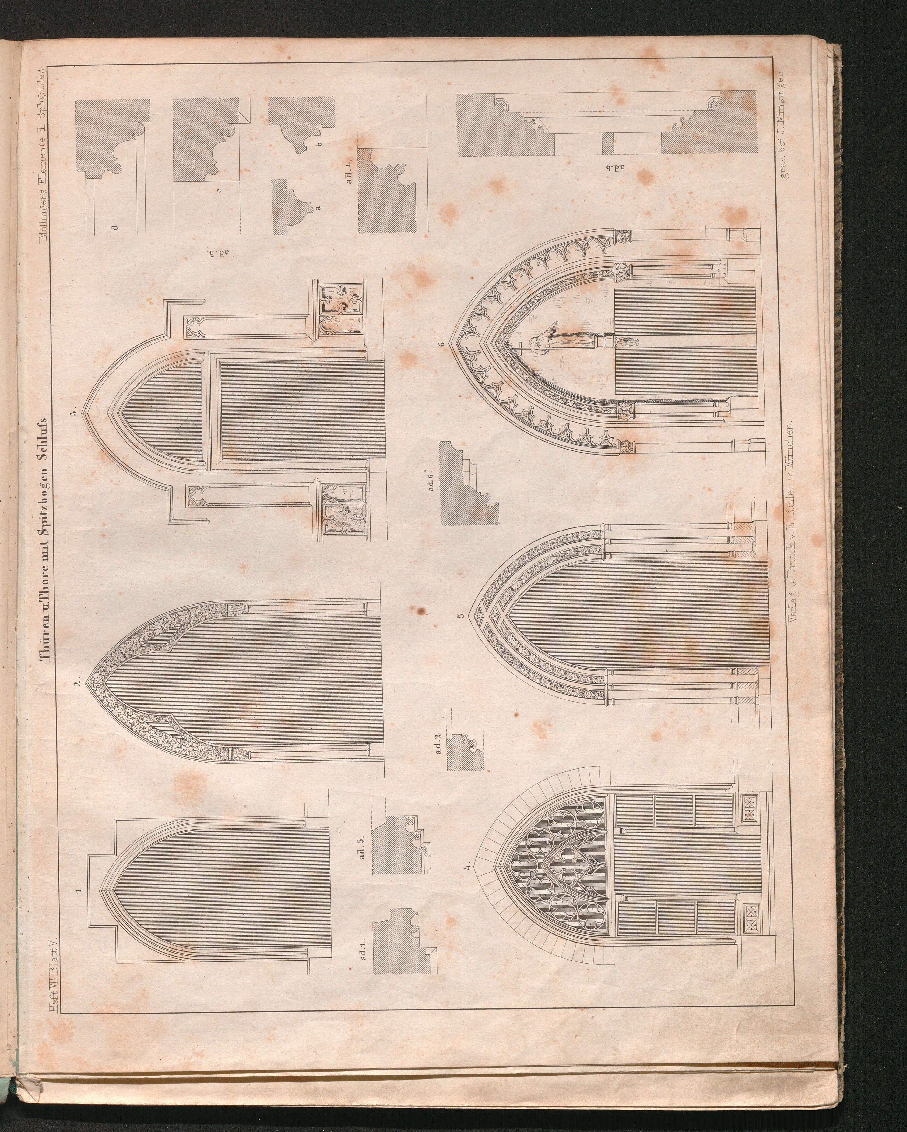 Heft VII. Blatt VII. Spitzbogenthüren mit gedrückter Bogenwölbung.