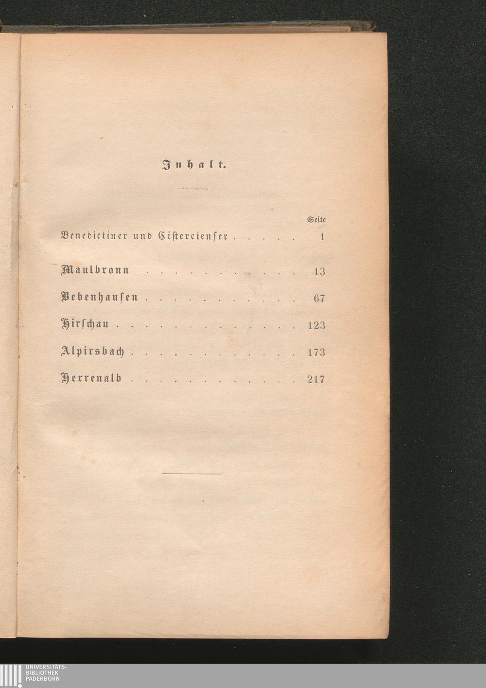 I. Abtheilung, <1>, Text (1866) Maulbronn, Bebenhausen, Hirschau, Alpirsbach und Herrenalb