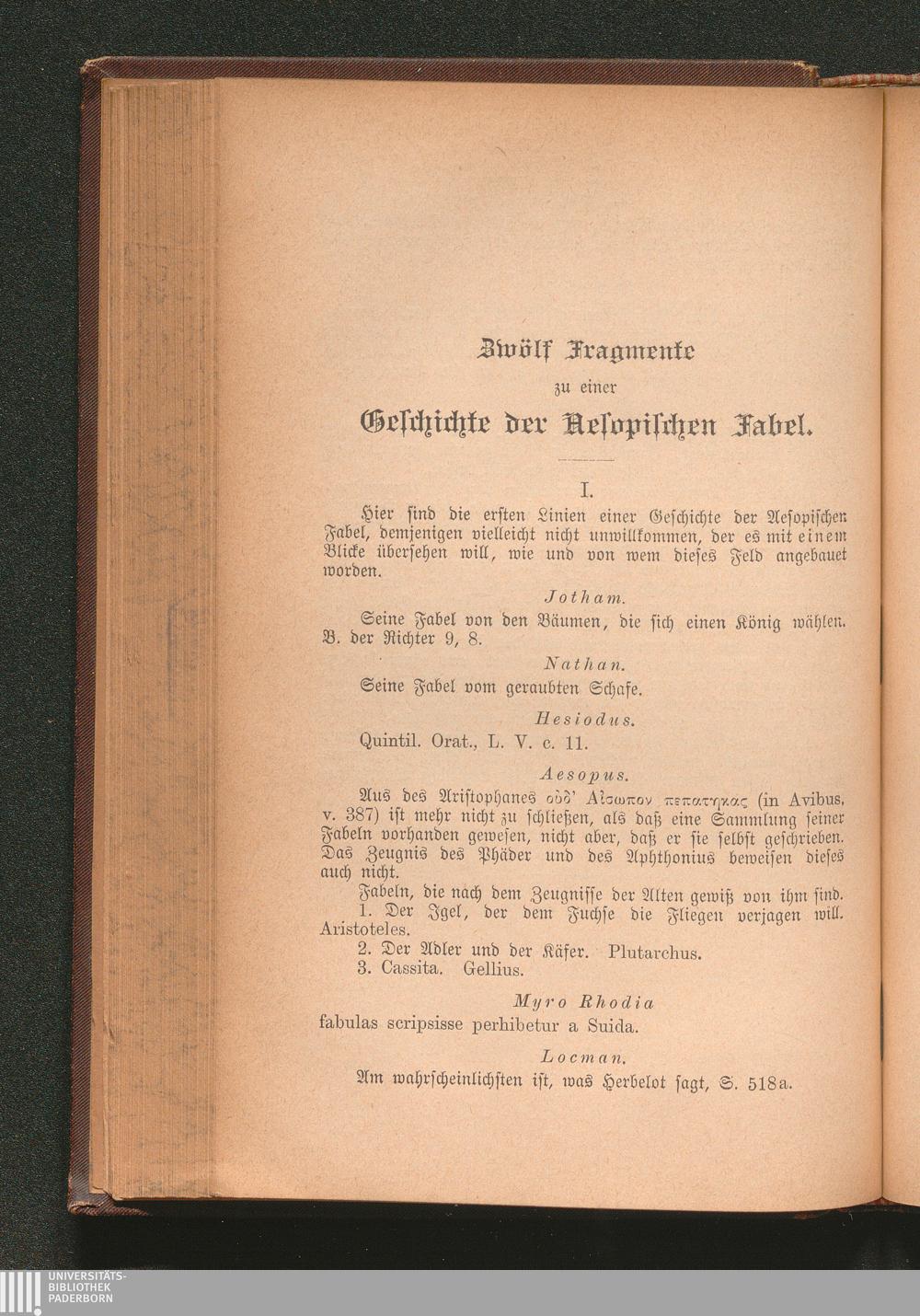 Zwölf Fragmente zu einer Geschichte der Aesopischen Fabel