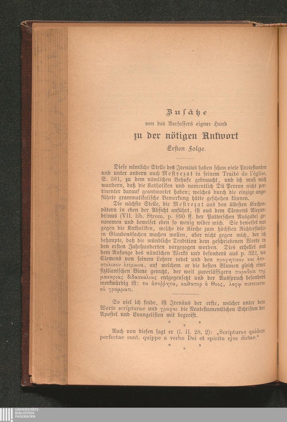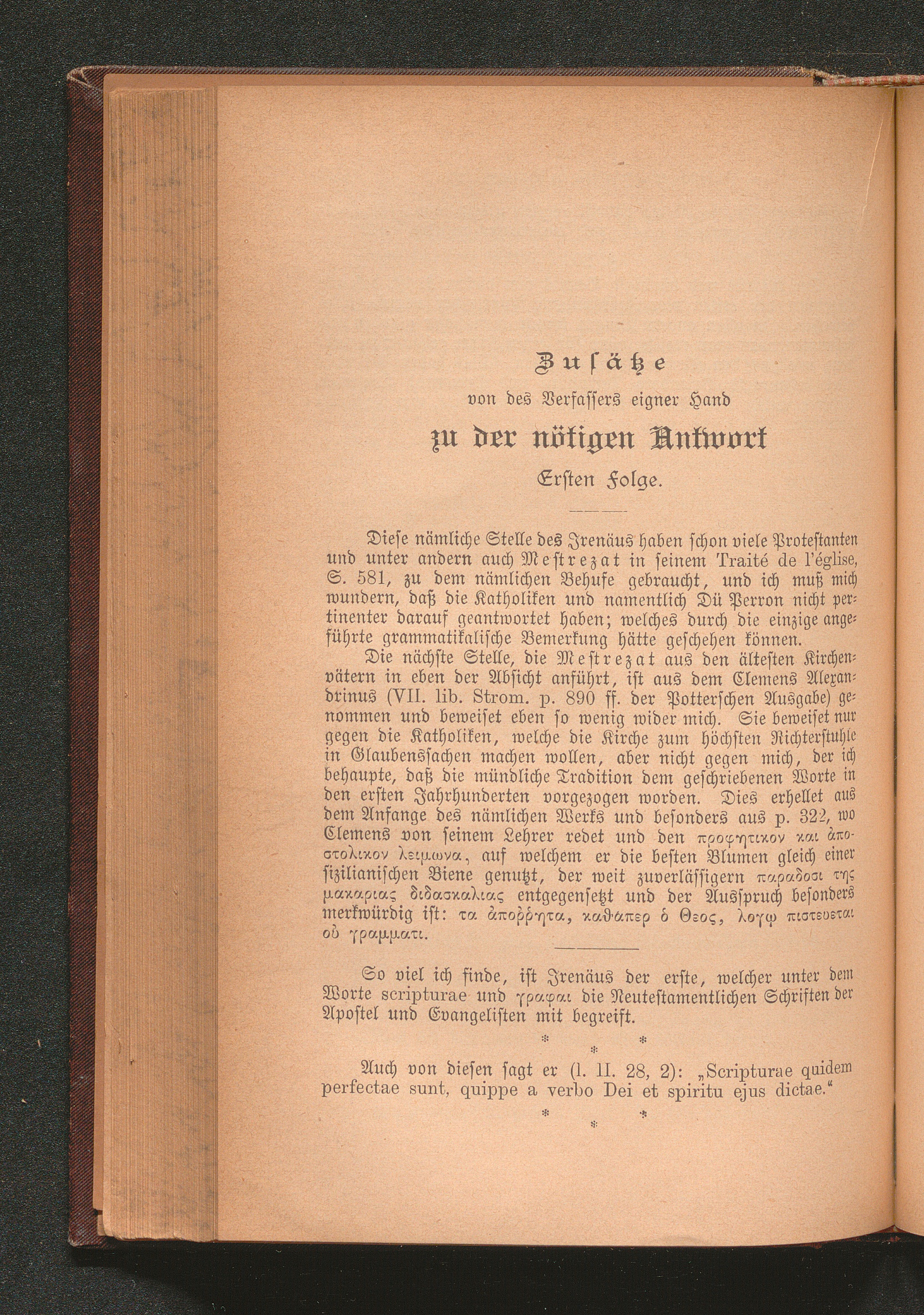 Zusätze von des Verfassers eigner Hand zu der nötigen Antwort Ersten Folge