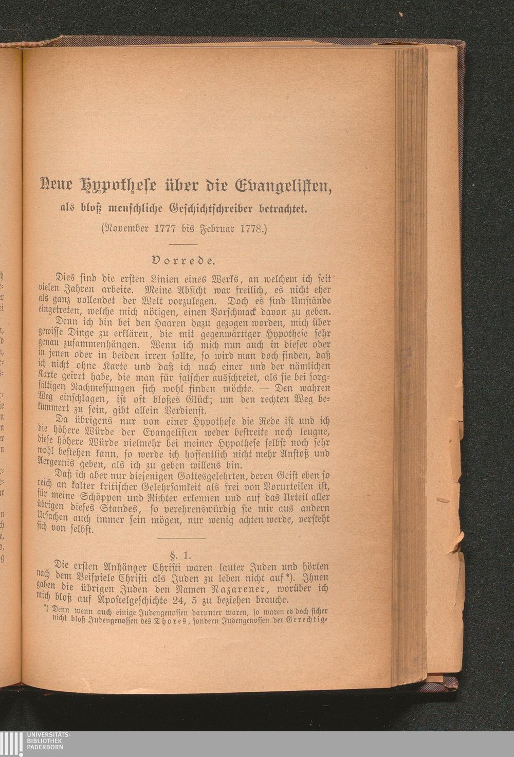 Neue Hypothese über die Evangelisten, als bloß menschliche Geschichtschreiber be[...]