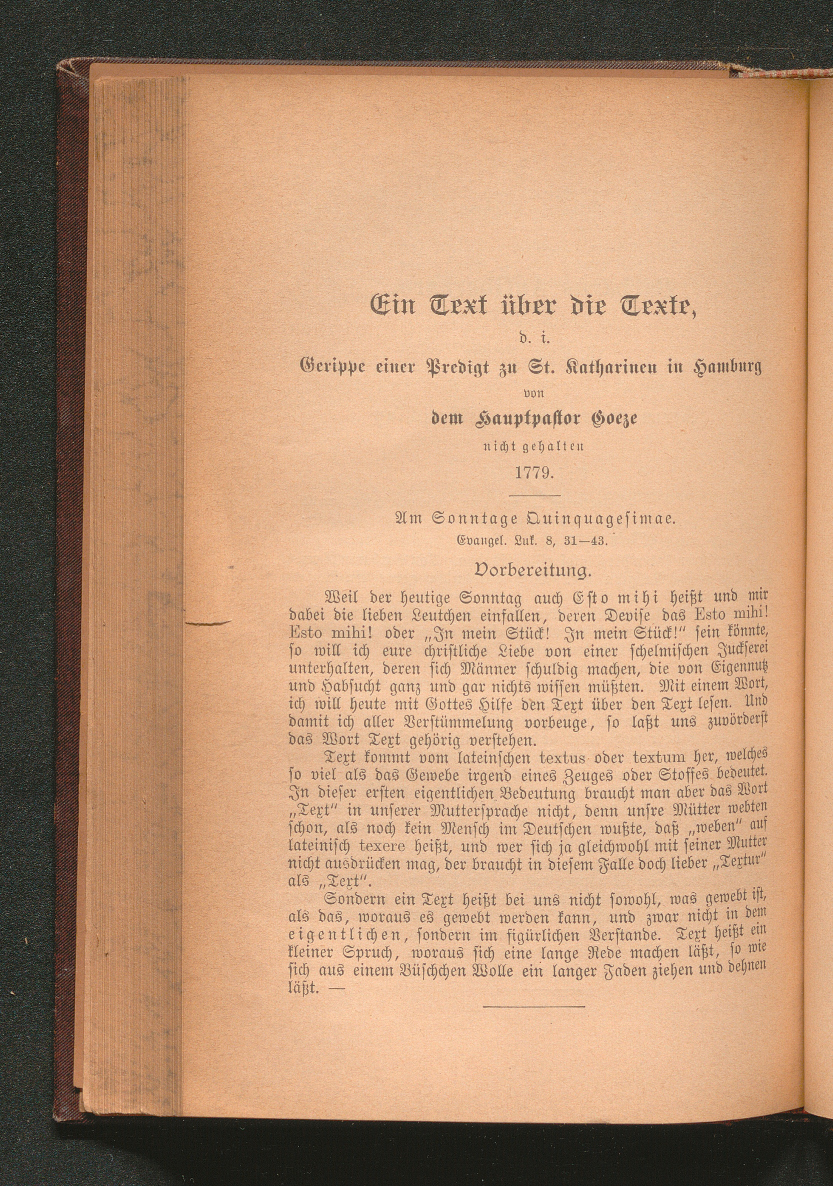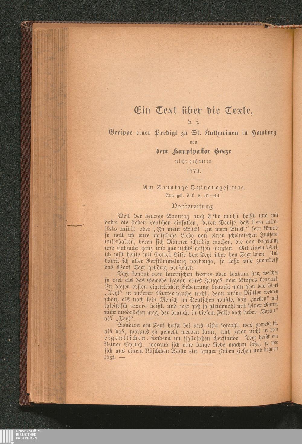 Ein Text über die Texte, d. i. Gerippe einer Predigt zu St. Katharinen in Hamburg[...]