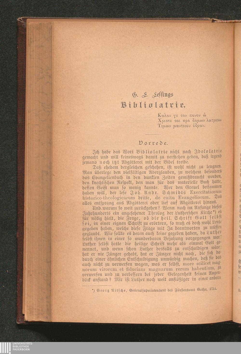 G. E. Lessings Bibliolatrie