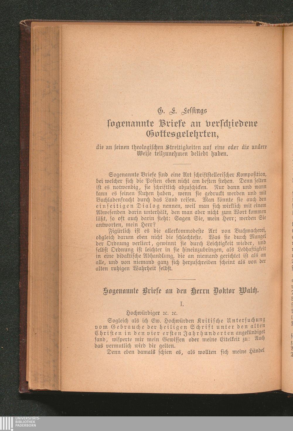 G. E. Lessings sogenannte Briefe an verschiedene Gottesgelehrten, die an seinen theologischen[...]