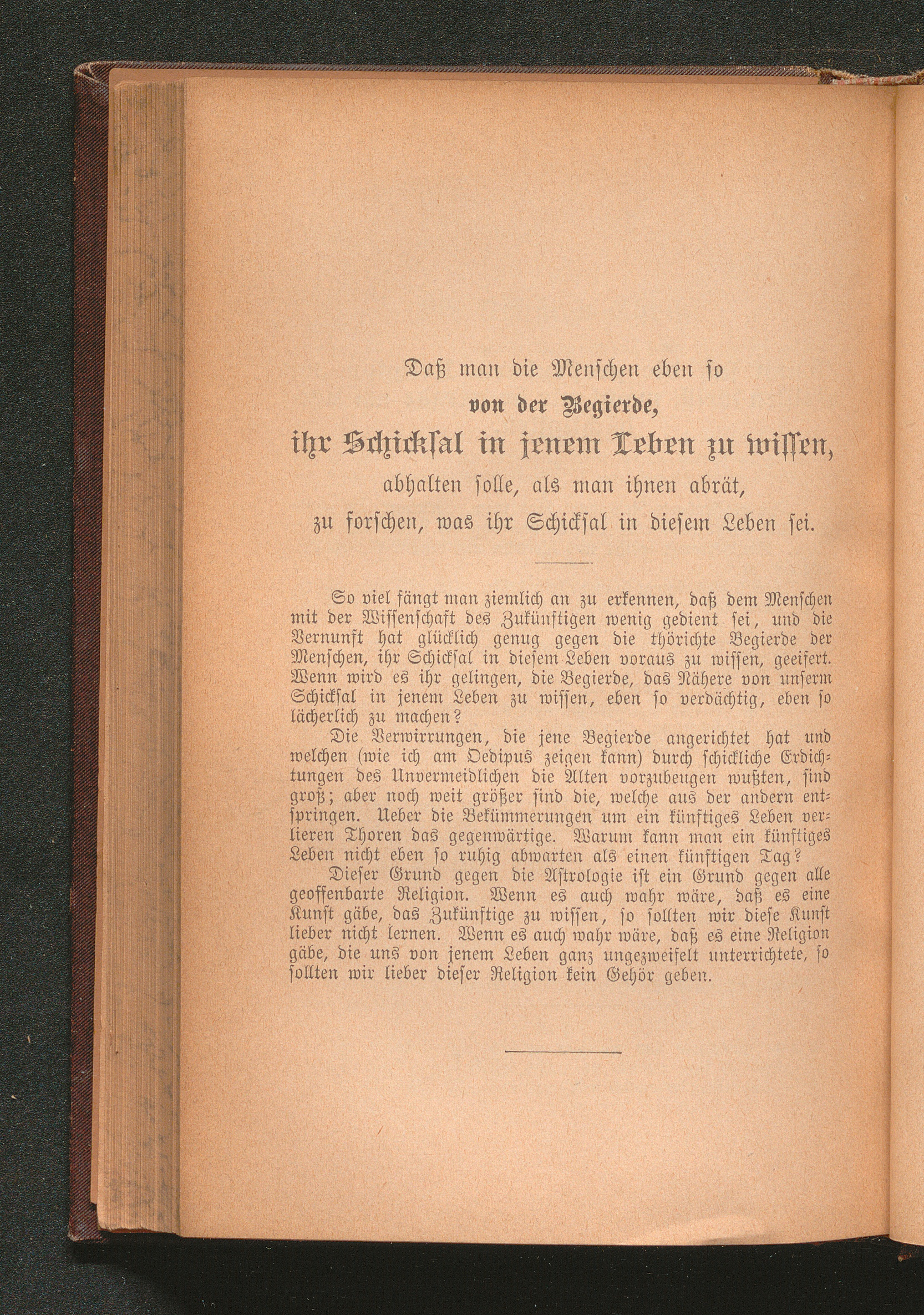 Daß man die Menschen eben so von der Begierde, ihr Schicksal in jenem Leben zu wissen,[...]
