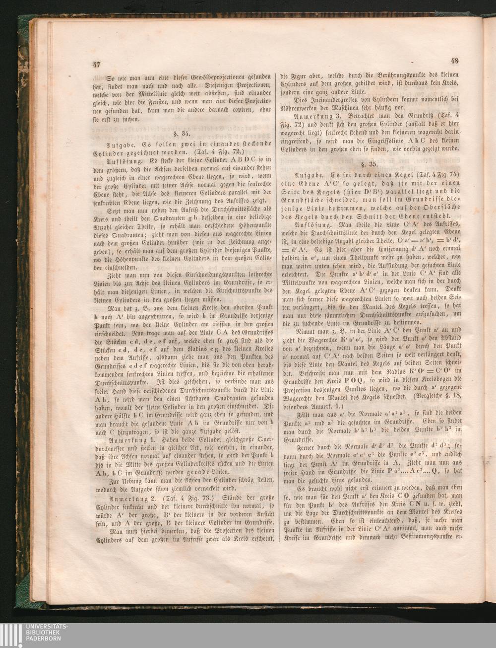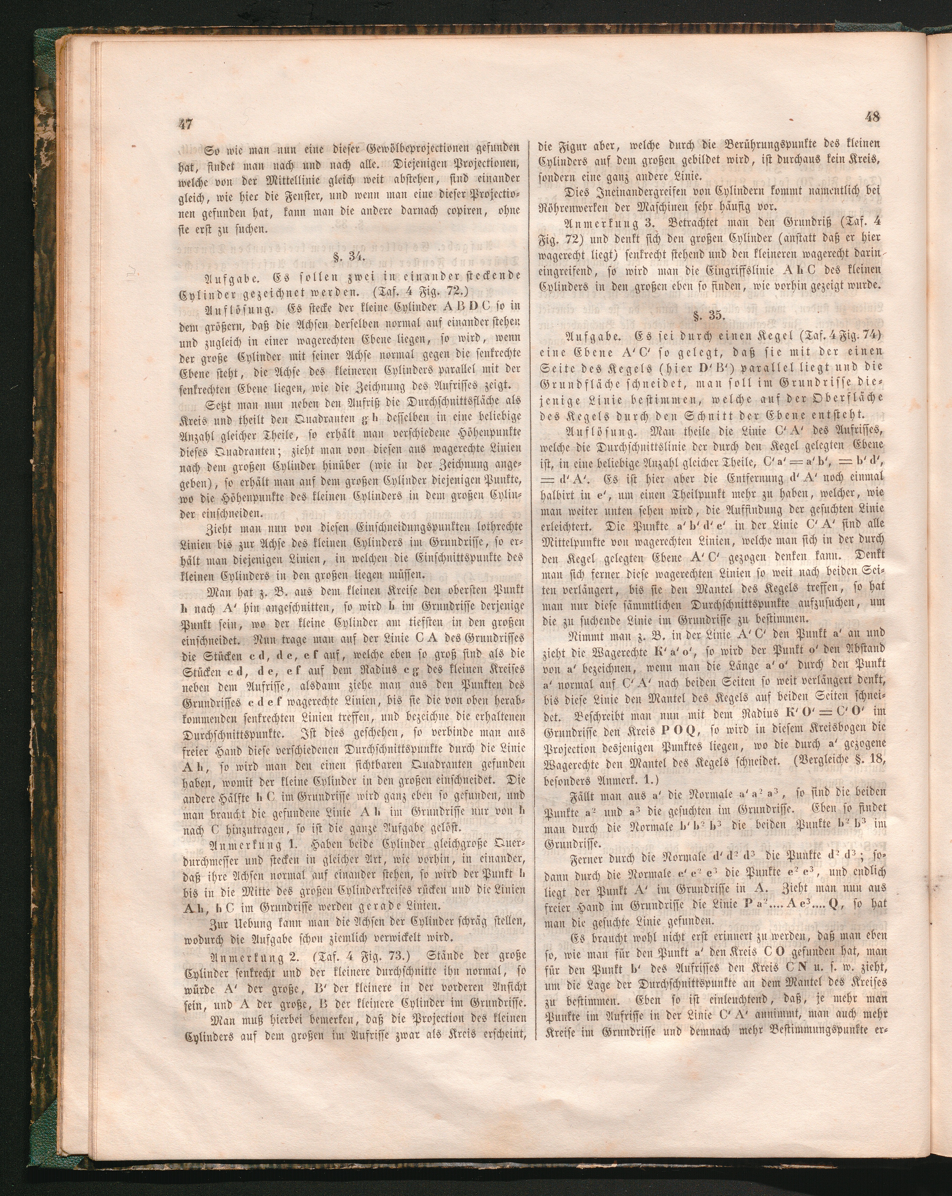 §. 35. Aufgabe. Es sei durch einen Kegel (Taf. 4 Fig. 47) eine Ebene A'C' so festgelegt,[...]