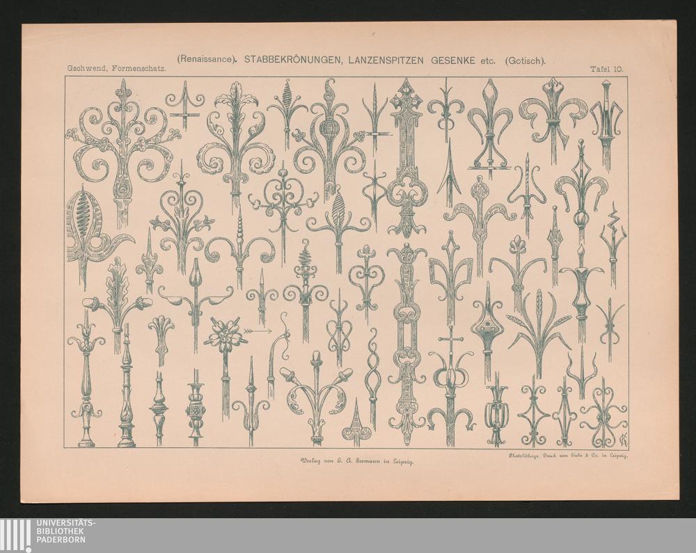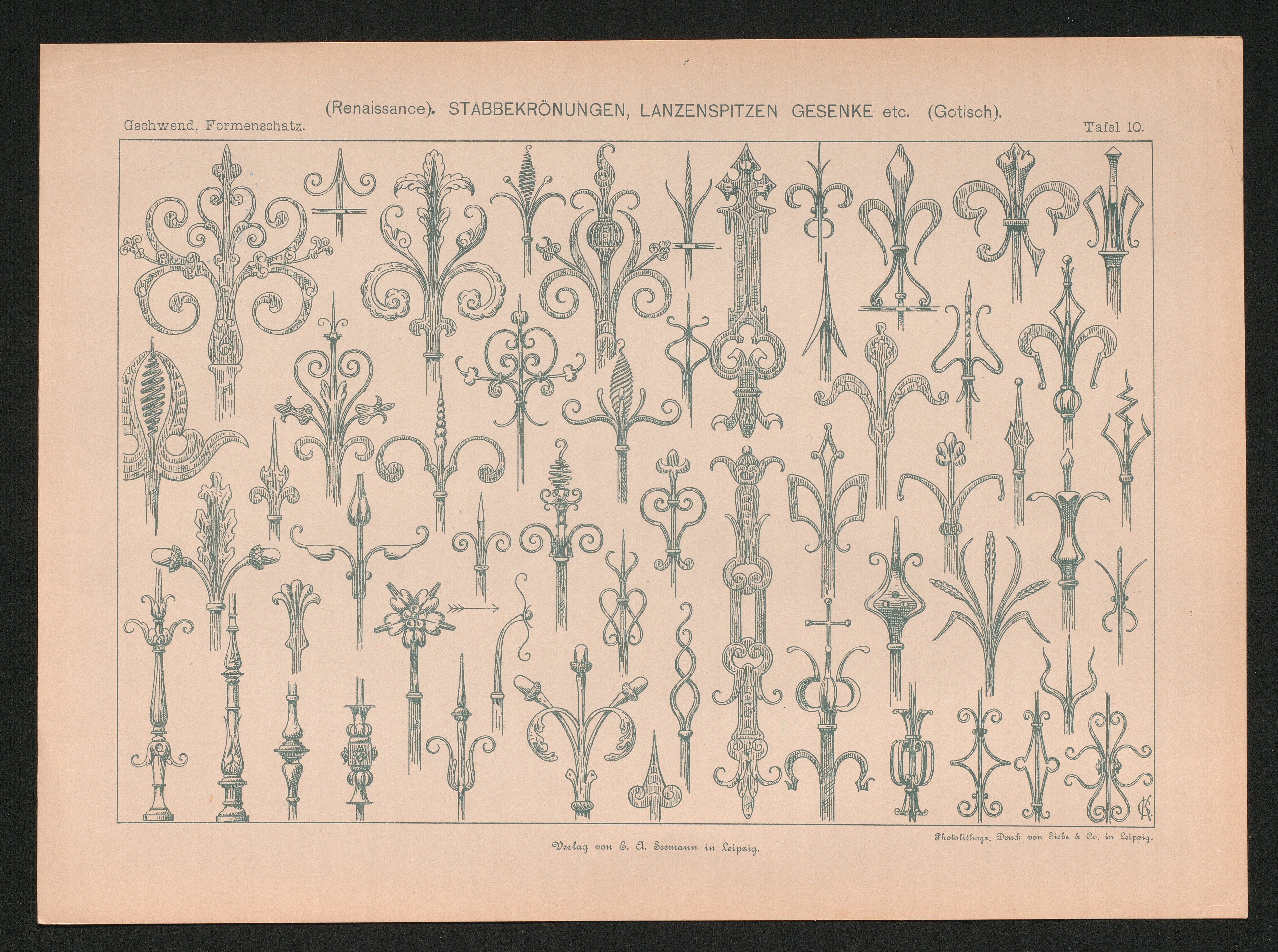 (Renaissance). Stabbekrönungen, Lanzenspitzen Gesenke etc. (Gotisch). Tafel 10.