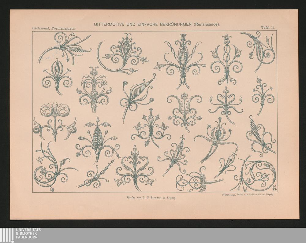 Gittermotive Und Einfache Bekrönungen (Renaissance). Tafel 11.