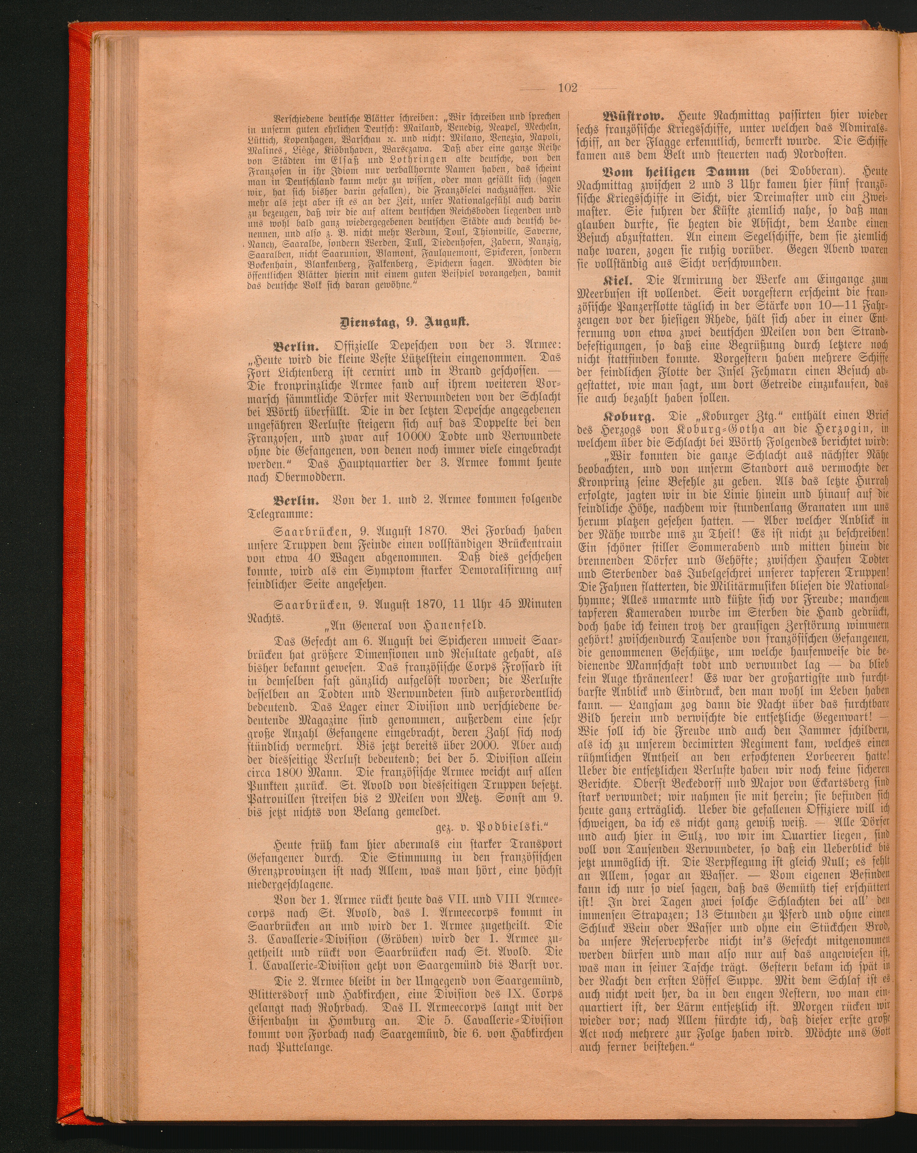 Dienstag, 9. August.