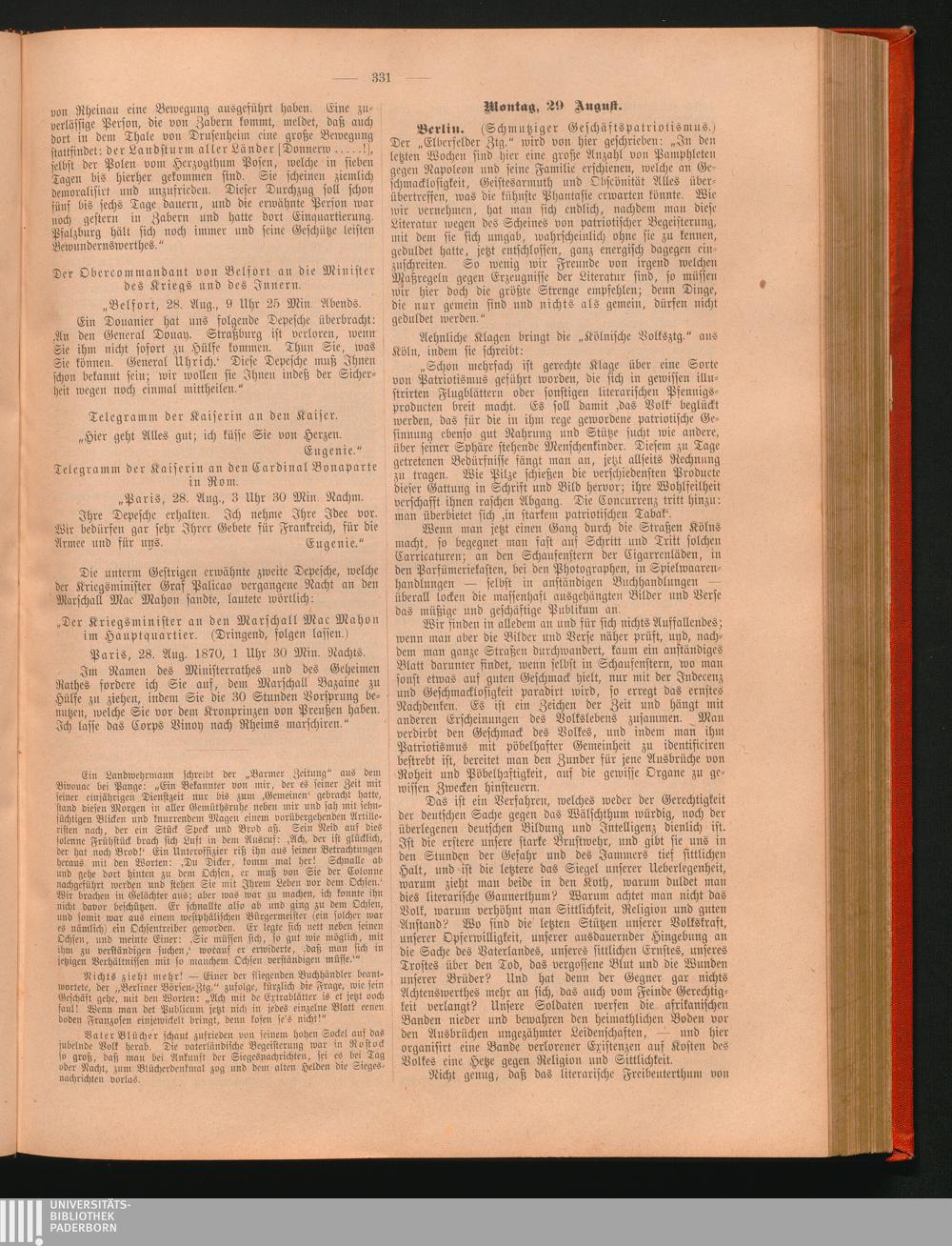 Tagebuch des deutsch-französischen Krieges 1870/71 : in Zeitungsberichten aus jenen Jahren / von Paul von Elpons